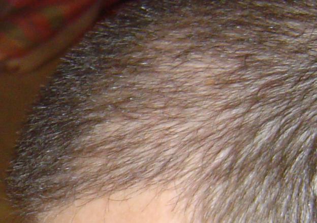 Die Haare schneide ich mit einem gewöhnlichen elektr. Kurzhaarschneider selbst, auch die transplantierten Stellen - Friseur lohnt sich nicht bei 4mm.