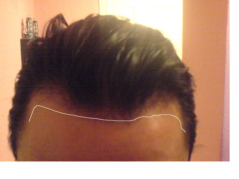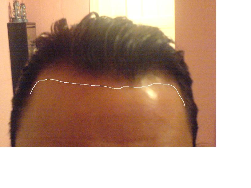 Leider sieht das mitlerweile ziemlich "bescheiden" aus weil die vordere Haarlinie an den seiten nach hinten gewichen ist.