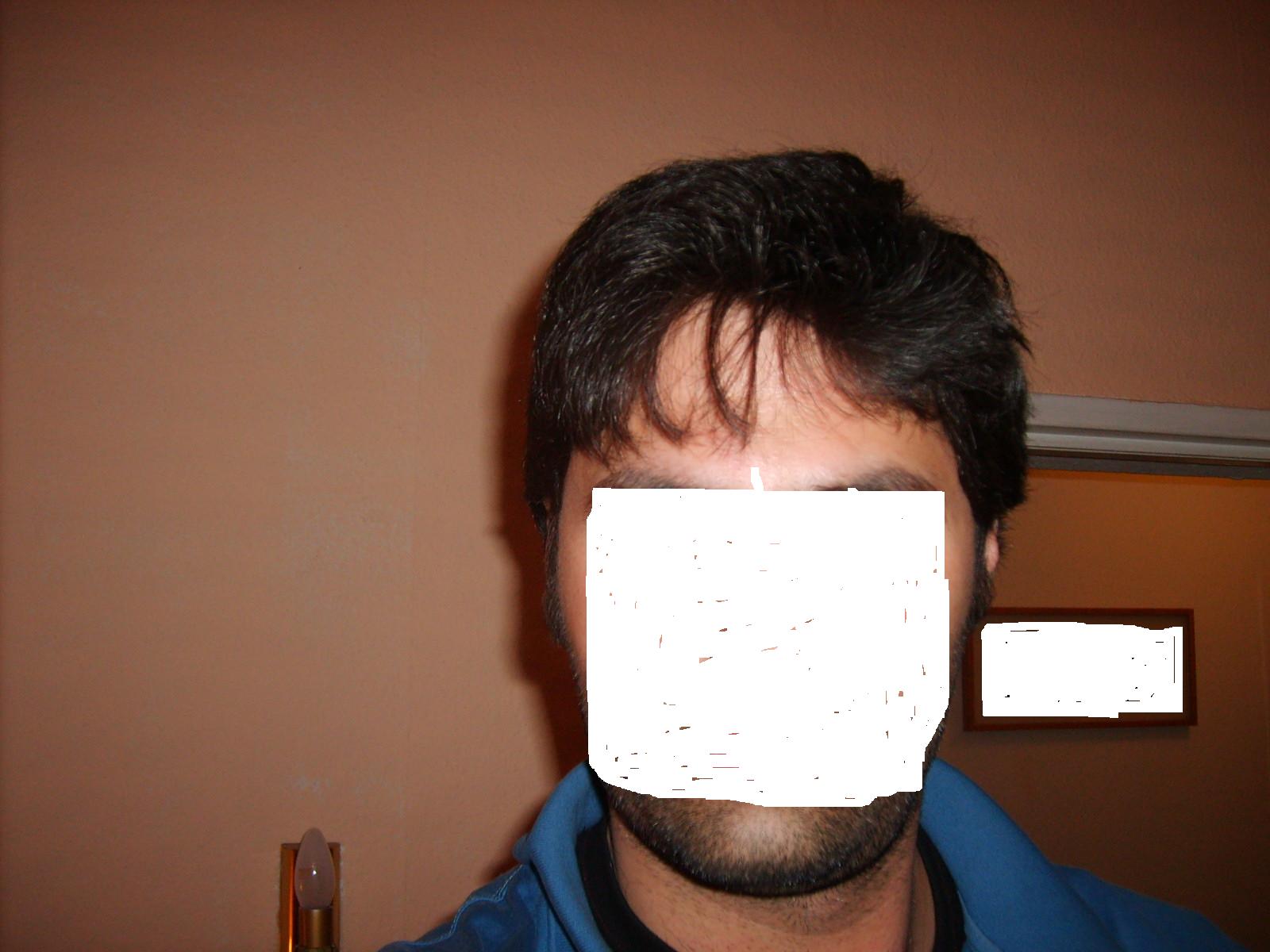 Also, Foto 1 zeigt, wie mich meine Umwelt in etwa wahrnimmt. Foto 2 und 3 enthüllen die bittere Realität (naja so schlimm ist es nicht). Allerdings könnt ich mit dem Zustand der linken Seite leben, aber die rechte macht mir zu schaffen. Zudem kommt noch hinzu, dass ich an der rechten Schläfe eine angeborene kahle Stelle habe, mit der ich mich nicht anfreunden kann (rechte Seite ist auf den Fotos nicht zu sehen). Ich weiß, viele würden sich die Tortur einer ht bei meinem Haarstatus ersparen...aber...o Eitelkeit, Dein Name ist homo pithicus