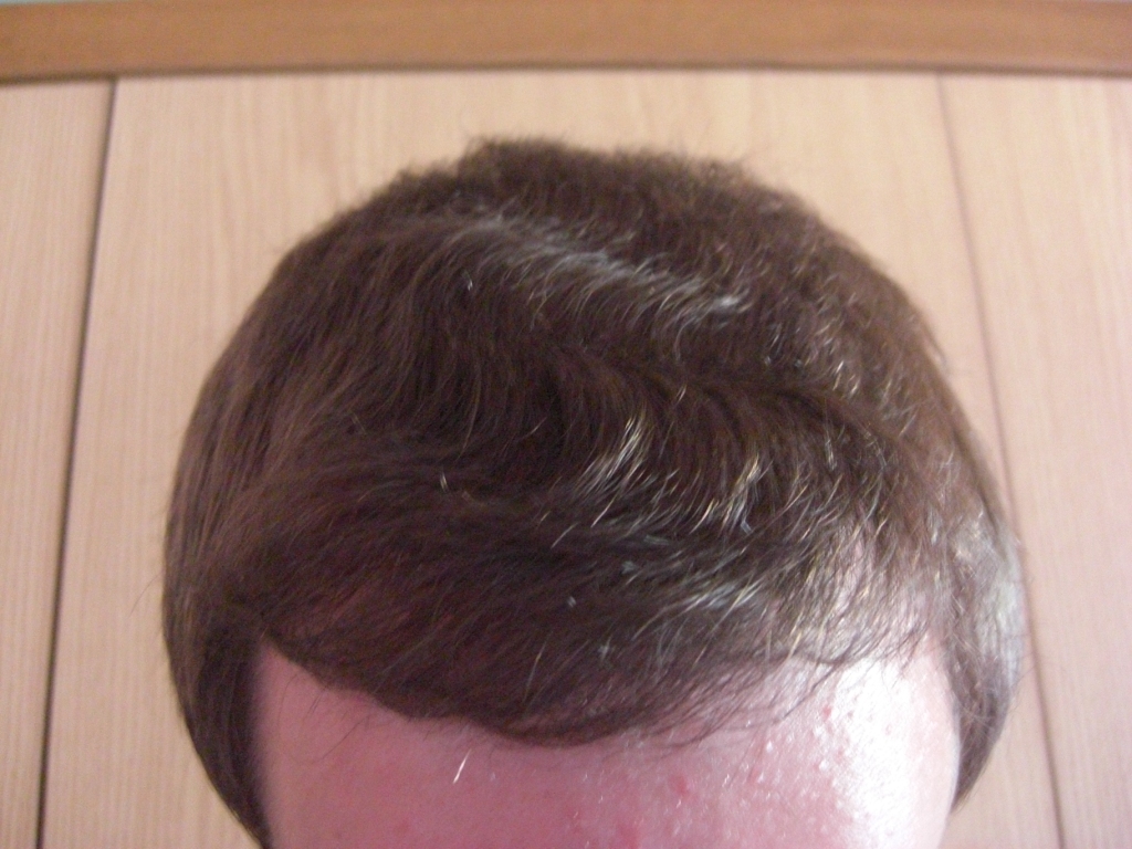 Die Haare wellen sich oben noch, wie man auf den Bildern sieht. Ist aber nicht weiter tragisch, da sich die Struktur noch ändern wird, was ich so gelesen habe. Ich spüre auch noch Stoppeln auf der Kopfhaut und erst heute wurde ein Pickel in der Tonsur gesichtet ( yeah! Ein neuer Graft!)