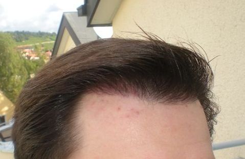 Also ich finde die Form meiner Haarlinie nicht sehr natürlich. Ich finde sie viel zu gerade und an den Seiten zu weit runtergezogen. Ich wollte eigentlich Geheimratsecken behalten. Aber ich habe mich ganz auf Rahals Auge verlassen und die eingezeichnete Haarlinie nicht von der Seite sondern nur von vorne angeschaut – was natürlich auch mein Fehler war. Ich habe mir schon überlegt wieder Grafts entfernen zu lassen. Dies ist aber erstmal Zukunftsmusik, weil derzeit meine Kopfhaut immer noch schlimm aussieht und ich will erst mal mein Endergebnis abwarten. Ausserdem sind die transplantierten Haare viel dicker und dunkler, aber da ist mit Strip wohl nicht viel mehr machbar.