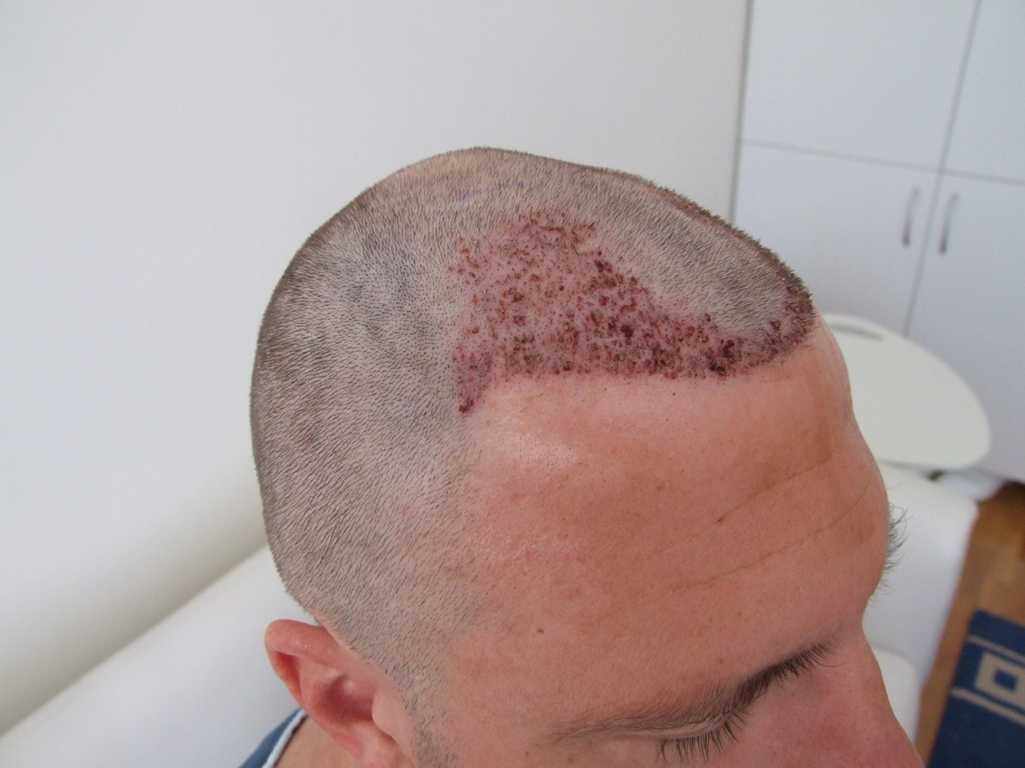 Deshalb folgte nun meine zweite OP. An zwei Tagen wurden mir insgesamt 2000 Grafts mittels FUE eingesetzt. (1000/1000)