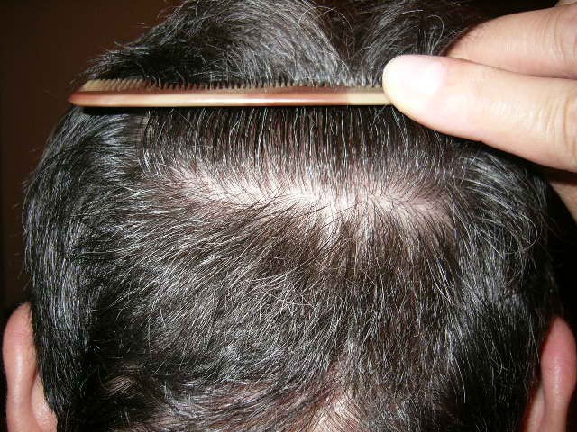 Zeig mir erst mal eine Stelle wo kein Loch ist. Nochmal: Was soll da in der Tonsur noch ausfallen???