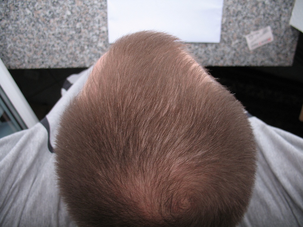 Also, Du scheinst insgesamt am Oberkopf diffus auszudünnen. In deinem Fall wäre Fin wohl sinnvoll (abhängig natürlich von eventuellen NW). Gerade die Tonsur könntest Du damit zumindest halten oder sogar verbessern.