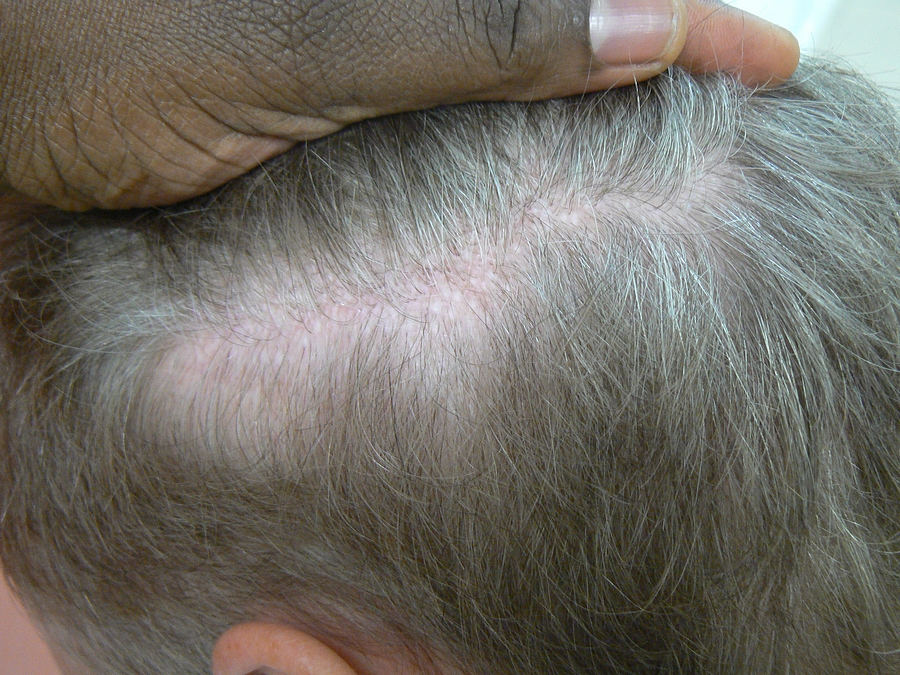 Kann das seine das Narben bei grauen Haaren weniger auffallen? Ich sehe zum ersten mal graue rasierte Haare mit Narbe. Der kontrast ist dann sehr gering,oder täusch ich mich da?