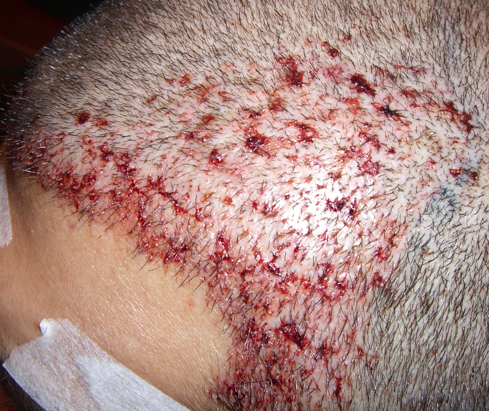 Und soweit ich mich erinnern kann benutzt er auch für FUE eine Klinge um die Empfangsöffnungen zu setzen. Dr. Keser benutzt eine Nadel. Der Vorteil,den ich persönlich daraus empfunden habe,war eine viel geringere Blutung und eine extrem schnelle Heilung, schon nach ein paar Wochen waren sogar alle Rötungen weg! Das die Blutungen geringer waren,sieht man ja auch an den Bildern