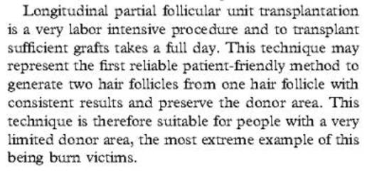 Diese Ergebnisse, die du als "schockierend" erachtest, werden in Fachkreisen schon als Nobel-Preis-verdächtig gehandelt. Der Grund dafür ist einfach: Alles was man "danach" auf Bildern sehen kann, das waren ja ursprünglich KEINE vollen/ganzen/"intakten" Haarfollikel! Das waren ja einmal alles nur die Haarschäfte (zwecks Wuchsrichtung/Orientierung) PLUS den allernötigsten Follikel-Gewebe drumherrum. Und die meisten "Bildchen", die man sehen kann, das sind ja meist alles nur Bildchen von Kandidaten, die ja noch "in Arbeit" sind, wie dieser Kandidat zum Beispiel: