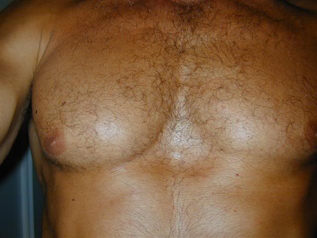 Aber das ist eine typische trainierte Männerbrust, sein Latissimus ist auch stärker ausgeprägt. Der Typ trainiert anscheinend regelmässig.