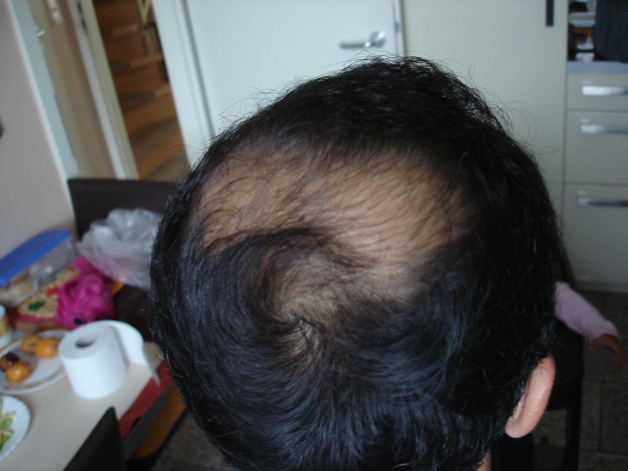 Mein Resthaar auf dem Kopf ist auch ziemlich dünn und leicht gewellt.