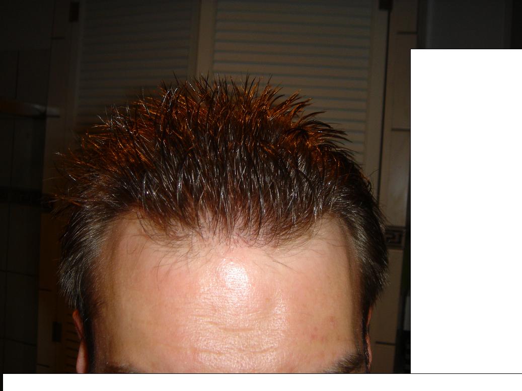 Auf den pre-op-bildern kann jeder sehen, dass bei mir die brücke ziemlich stark miniaturisiert war! In diesen Bereich wurden noch mehr grafts hineintransplantiert, als ursprünglich geplant, weil sich die situation mittlerweile noch verschlechtert hatte.. es gab keinen feststellbaren shock-loss und von miniaturisierung ist da jetzt nix mehr zu sehen...