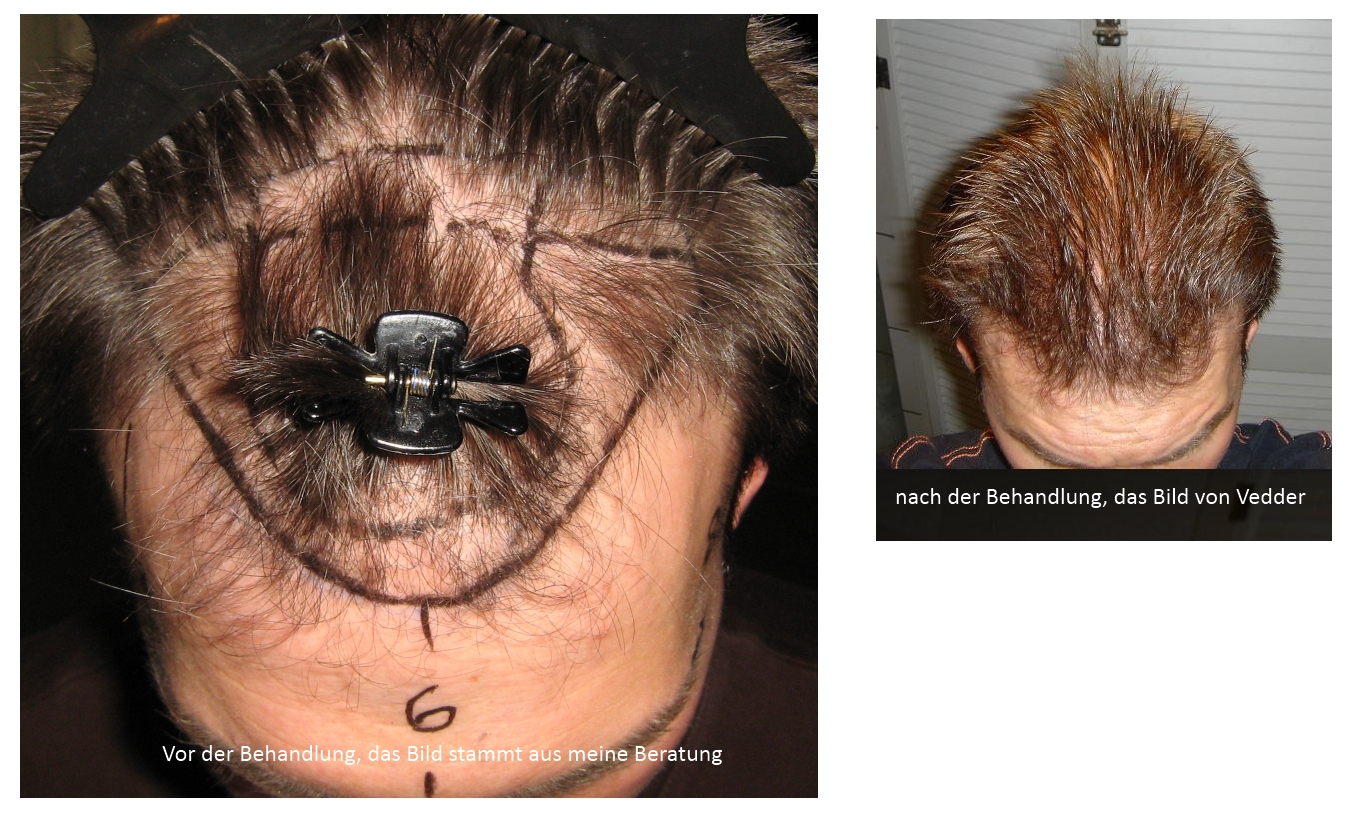 Wir haben bei Vedder alles verdichtet, und wie Du sehen kannst, wurde kein vorhandener Grafts vernichtet, und wie es aussieht alles schön harmonisch angewachsen. Das ist der Kunst, und ich weiß ehrlich gesagt auch nicht, was Du von einer HT erwartest.