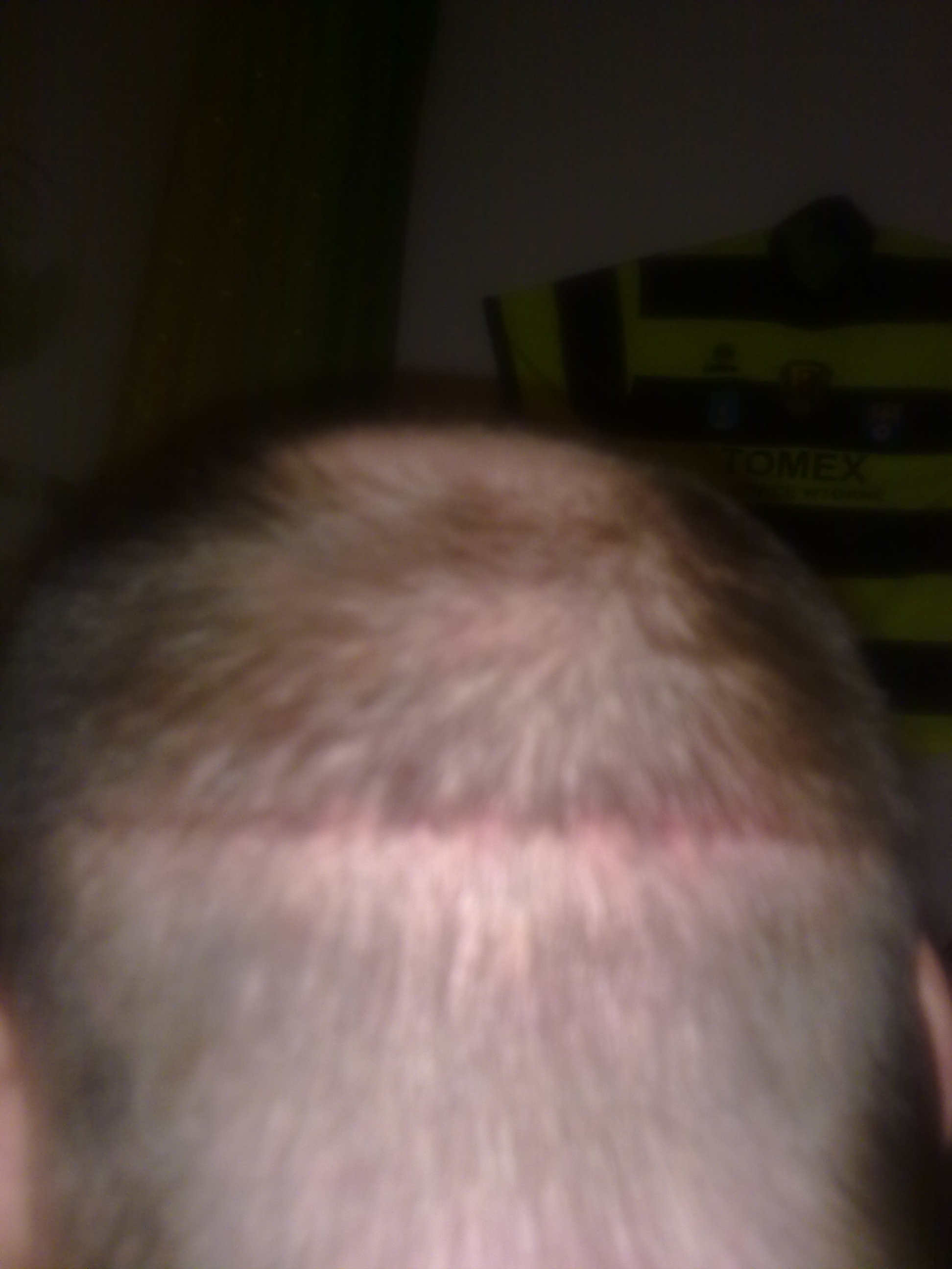 Wie ich vorher aussah brauch ich nicht Fototechnisch zu dokumentieren, kahl bis zur Tonsur.