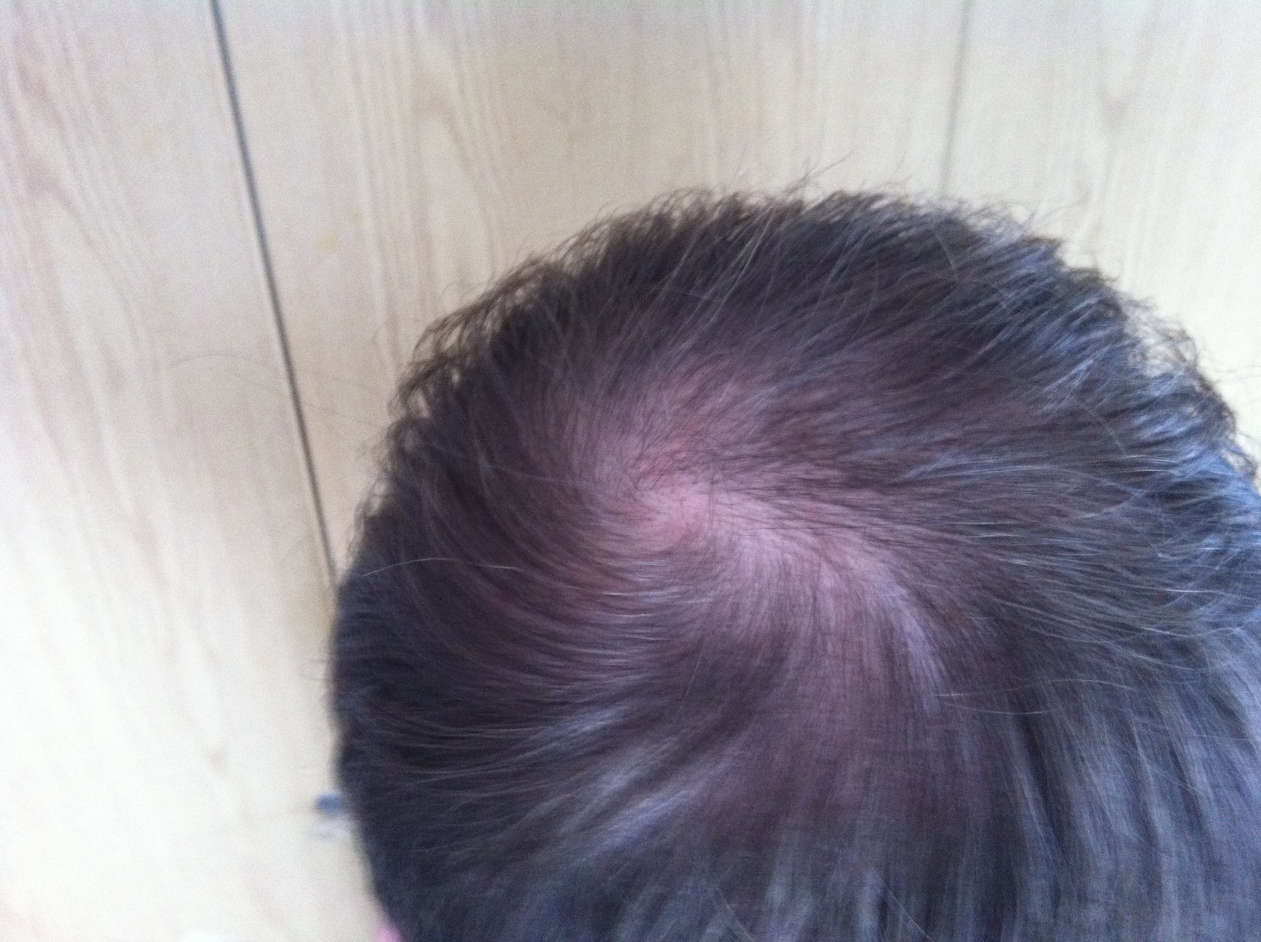 1) Auf der linken seite bei der Narbe gibt es ganz offensichtlich überhaupt ein kleines kahles Loch - aber nicht weiter schlimm;