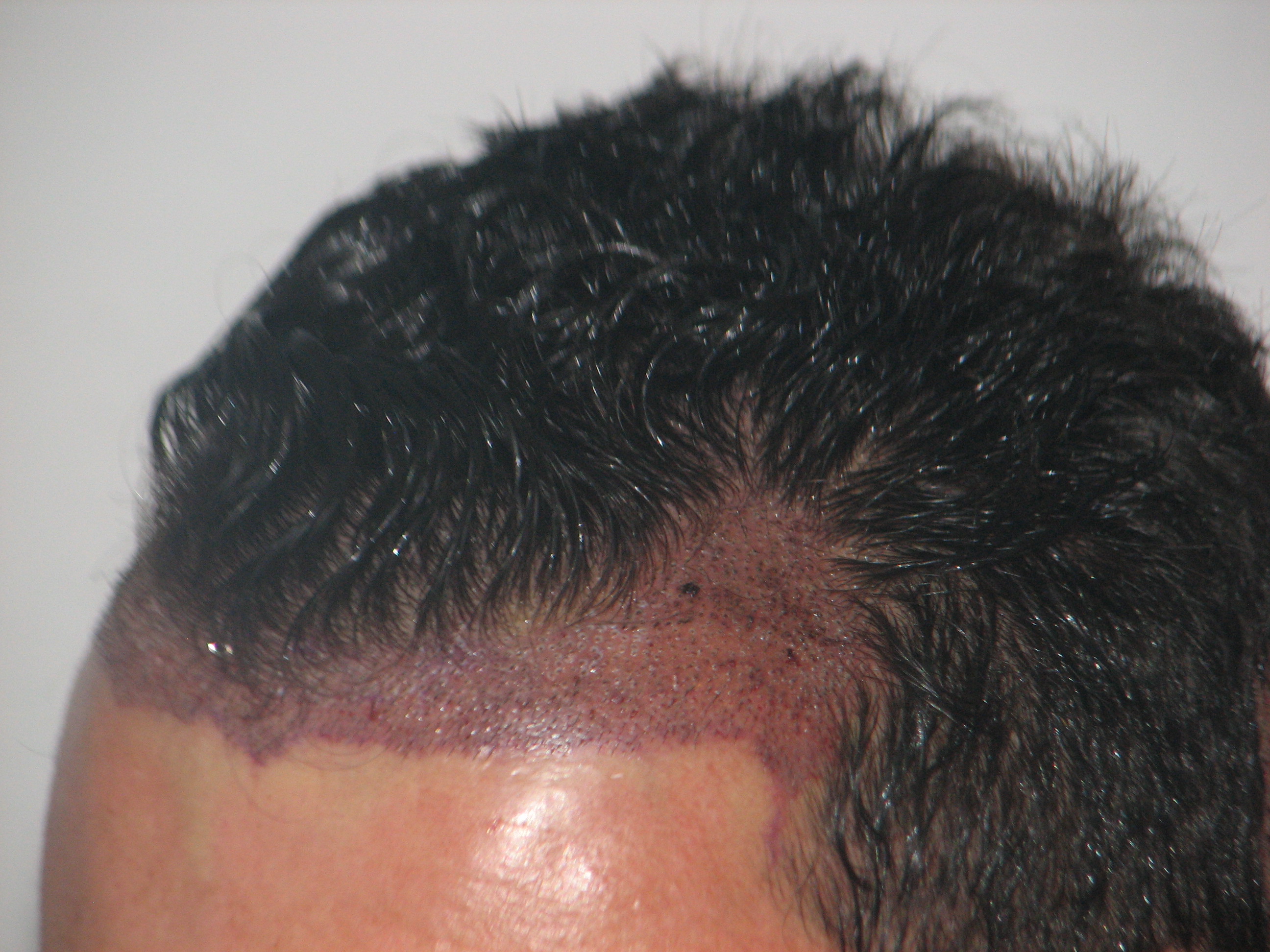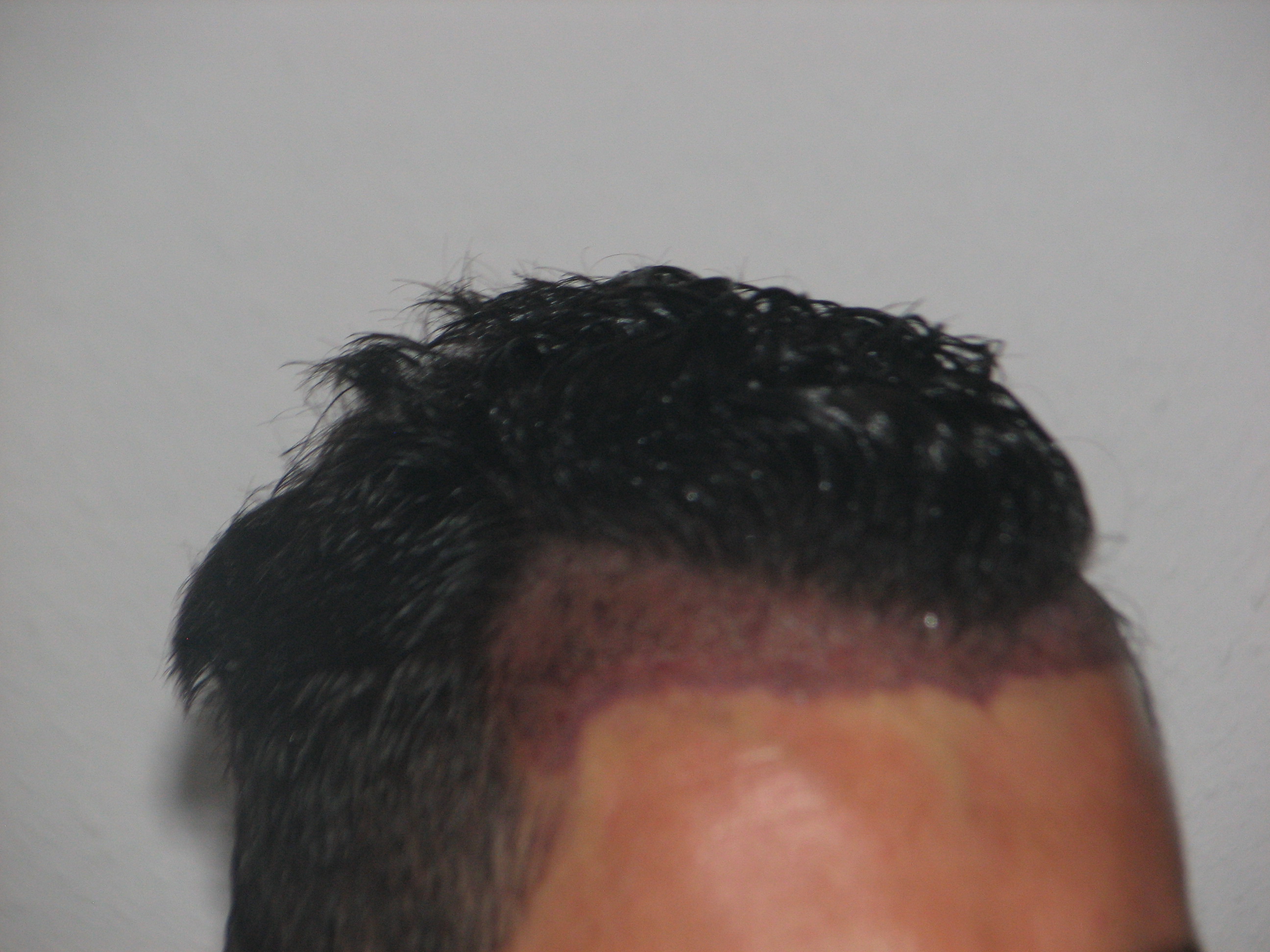 Als ich gestern gegen 23 Uhr fertig wurde, begab ich mich nach den Post-OP Anweisungen in ein Restaurant und dann ins Bett. Am nächsten Tag störte mich in der Haarlinie ein neben meinem Mittelpeak auf meiner rechten Seite befindliches nach unten gesetztes Dreieck. Ich bin dann- wie ohnehin zum Haarewaschen vereinbart - zur Praxis gelaufen und habe ihn darauf angesprochen. Ohne Probleme hat er mir einfach eine Spritze gegeben und die Grafts umverteilt. Hat nicht mehr als 20 Minuten gedauert und hat er durchgeführt, obwohl er noch einen (im Vorbereitungsraum sitzenden) Patienten hatte.