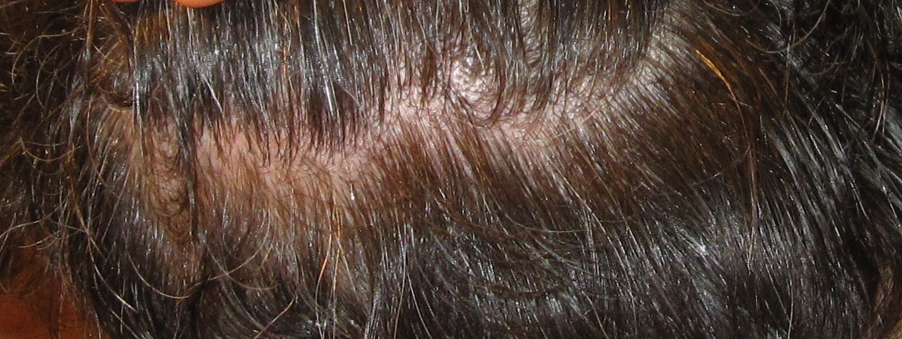 Dieser Patient hatte vorher eine Strip-Op mit schlechter Anwuchsrate.