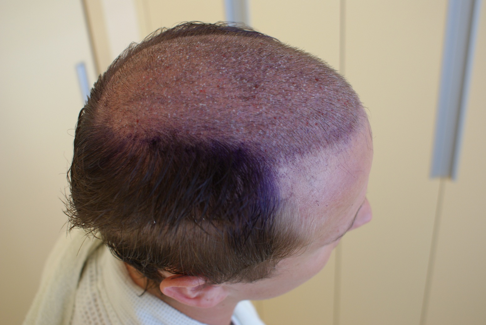 nur 2000 Grafts per FUE entnehmen(laut dr epstein die schwelle ungefähr bei der man von einer FUE bei rasiertem donor noch