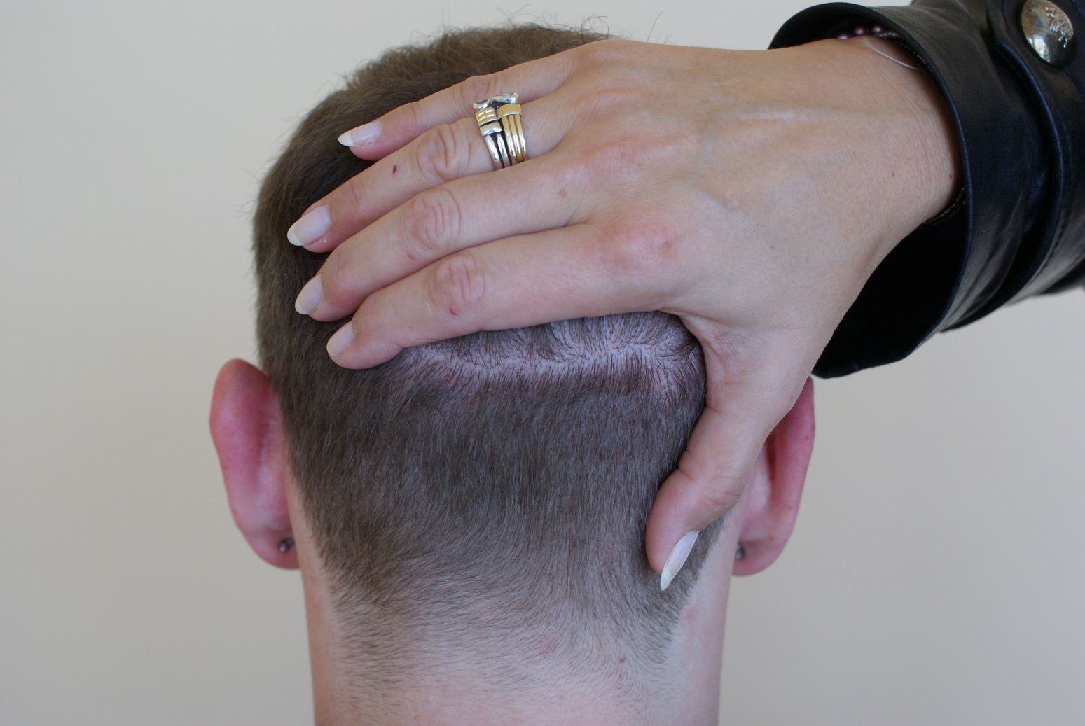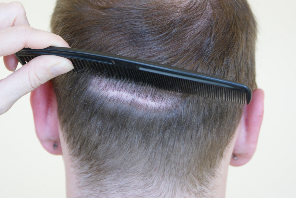 Ich hatte bez. der Narbe auch bedenken, mit diesem Haarschnitt jedoch lässt es sich leben Wink