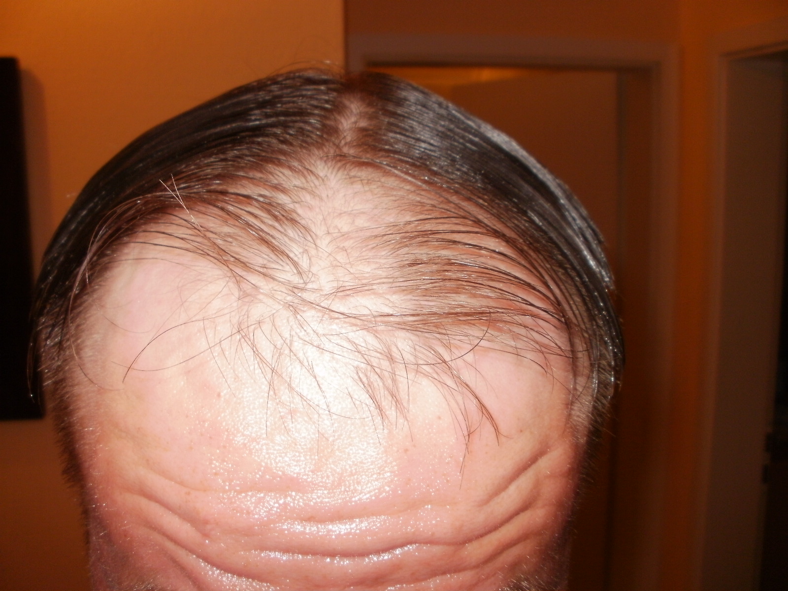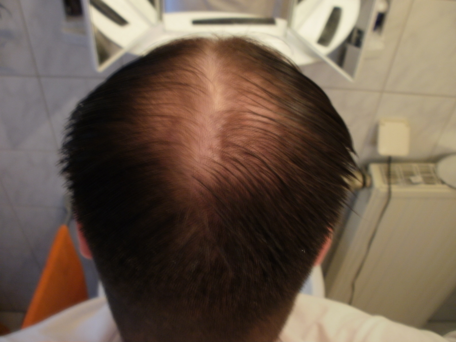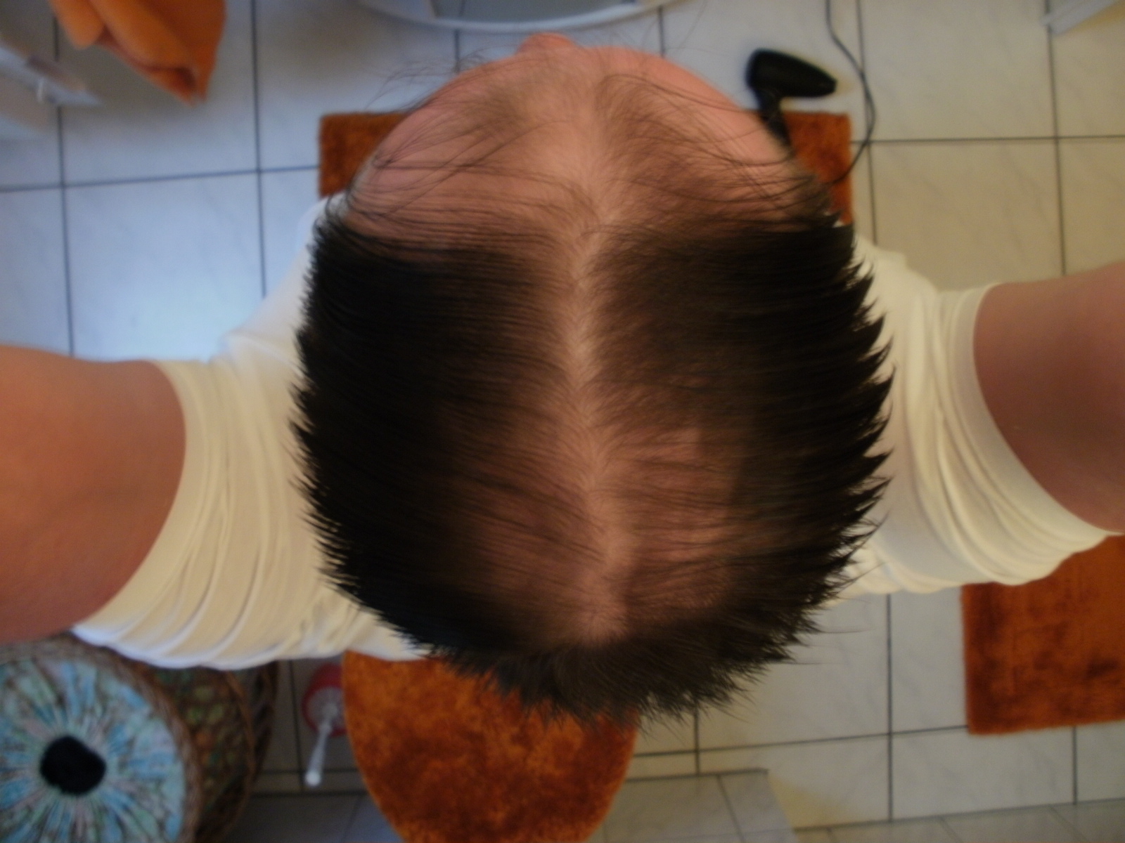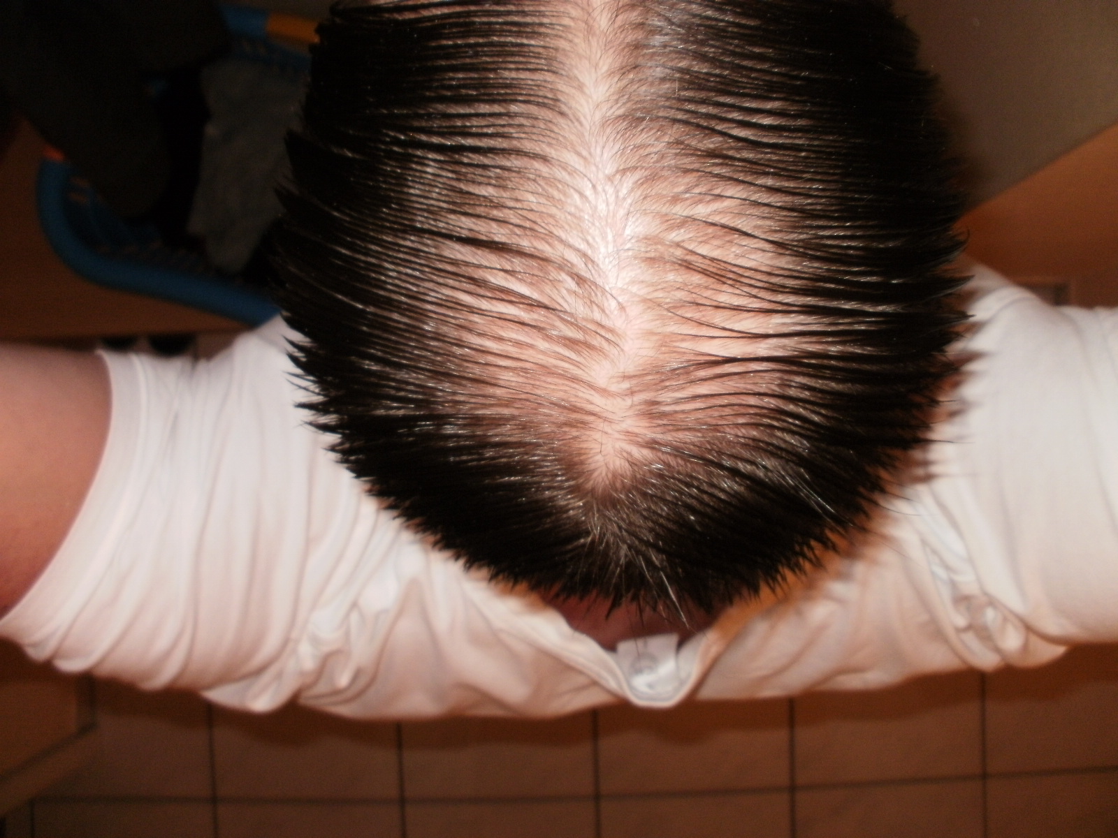 Mein HA verlief klassisch mit Beginn in den GEs dann Vorderkopf und jetzt in der Tonsur. Das Abrasieren kommt für mich aufgrund einer Fehlverknöcherung der Sagittalnaht und einer sog. Cutis verticis gyrata (Kopfhautfalten, siehe Wrestling-Star Batista) nicht in Frage. Ich glaube mein HA ist in seinem Endstadium. In der Front tut sich nicht mehr viel und die Grenzen der Tonsur zeichnen sich mittlerweile auch deutlich ab.