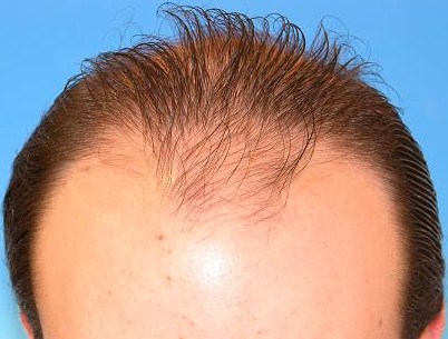 Je besser die Haarcharakteristiken sind, desto einfacher ist es eine natürlich aussehende Dichte und ein Maximum an Bedeckung zu erreichen wenn Haare transplantiert werden, besonders ab Norwood 5 aufwärts. Die Einplanung weiteren Haarverlustes wird auch einfacher, da der Haardurchmesser größere Abdeckung ermöglicht unter Beibehaltung einer größeren Dichte. Das Bild unten zeigt einen Mann, bei dem die meisten sagen würden, dass er sich in der 4er oder 5er Haarverlust-Klasse befindet, und dass obwohl er im zentralen Bereich immer noch Haare hat und die Dichte dort 68 FE (Follikulare Einheiten) pro cm2 beträgt - die Kopfhaut ist dennoch stark sichtbar.