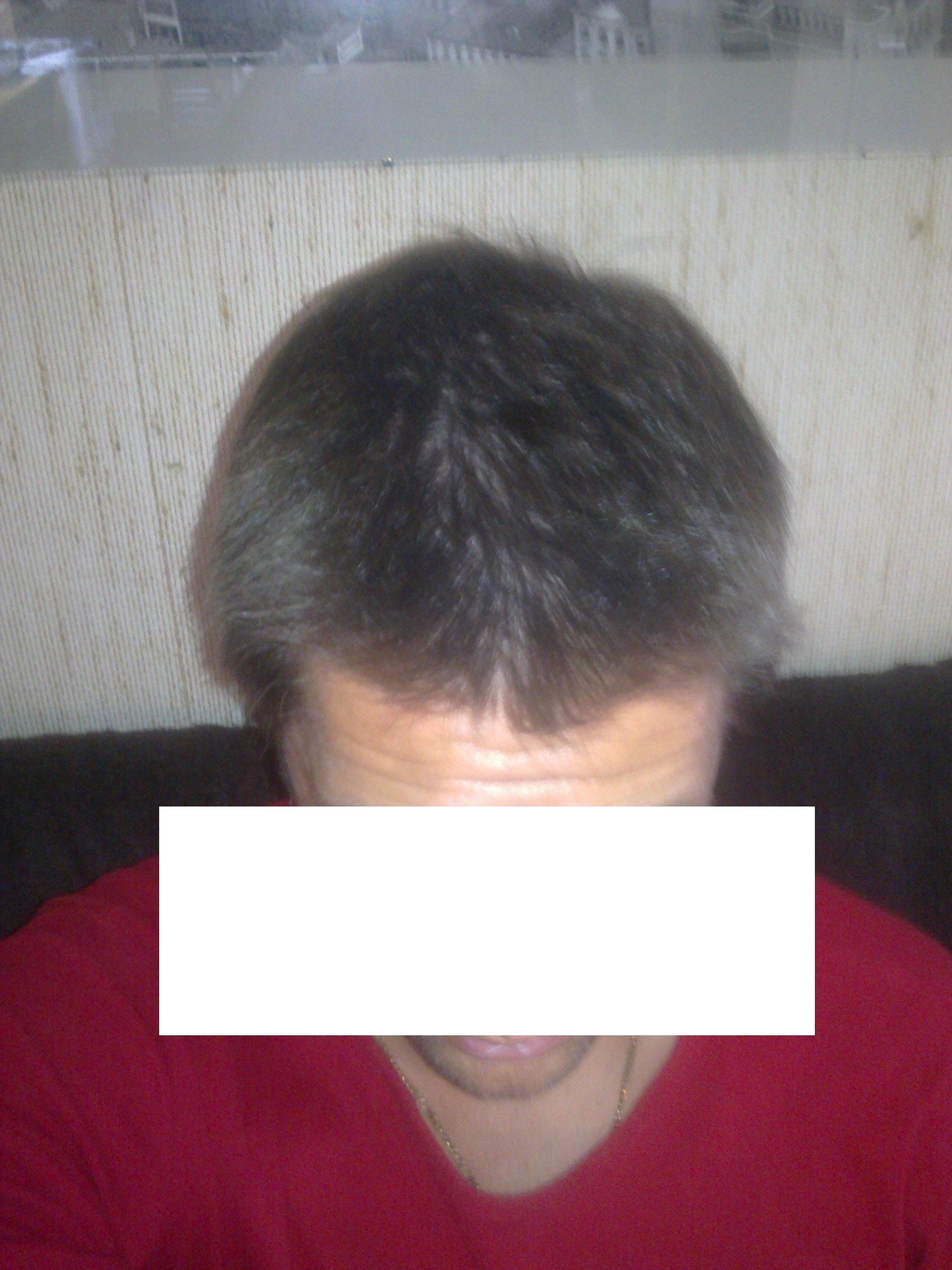 Wie man (hoffentlich) sieht, sind meine Geheimratsecken noch mehr als ok. Daher wundert es mich umso sehr, warum sich bei mir gerade eine Glatze am Scheitel bildet. Vor allem vor dem Hintergrund, dass es diese Glatzenart, sprich Ludwig-Muster, nicht in meiner Familie gibt. Habe mich bei meinen Bemühungen, den Haarstatus medikativ zu halten, auch immer auf den Hinterkopf konzentriert und eigentlich die HT auch nur für die Tonsur geplant. Nur scheint mir die Front mittlerweile akuter zu werden.