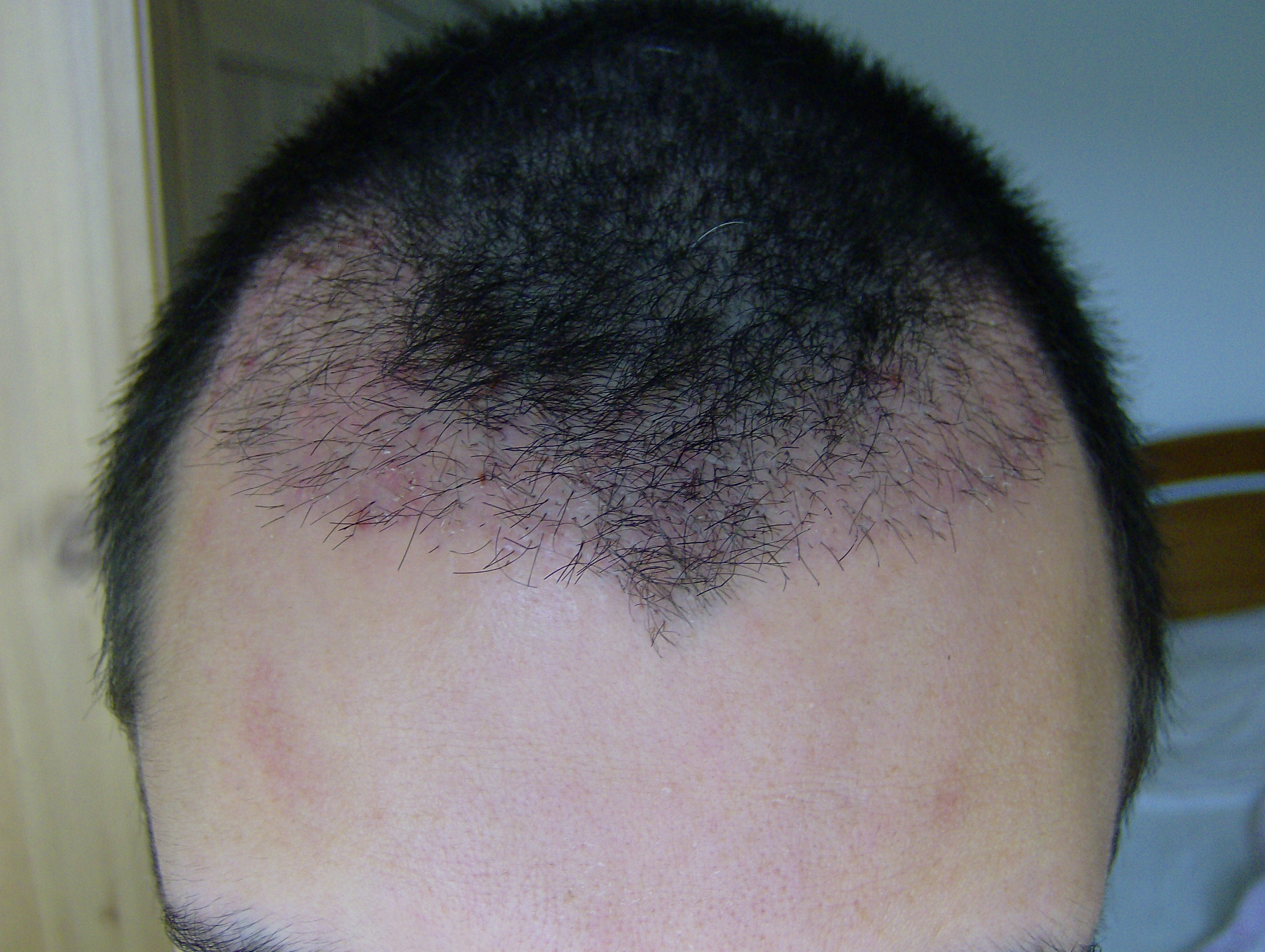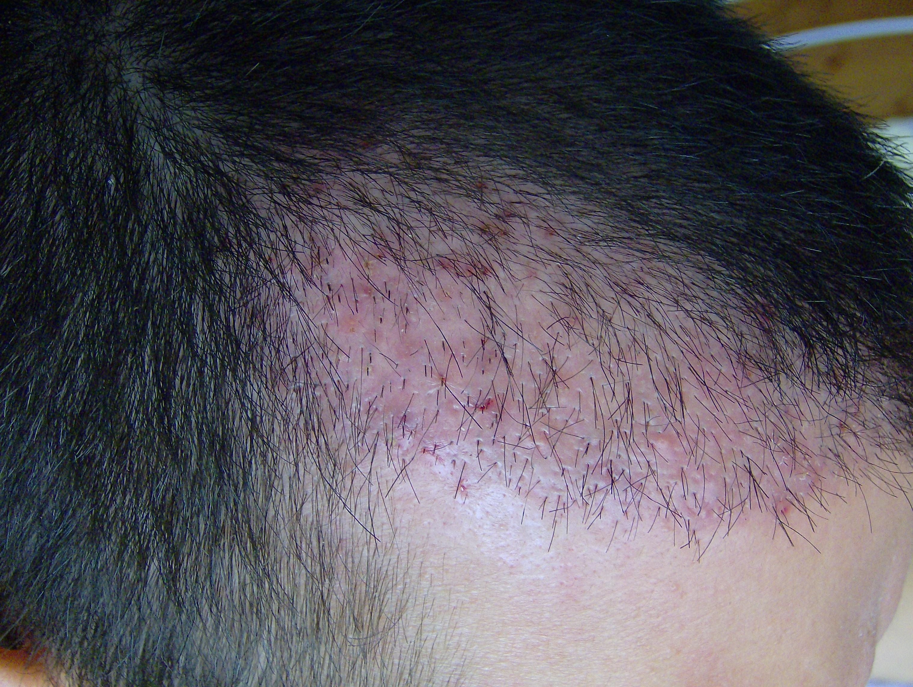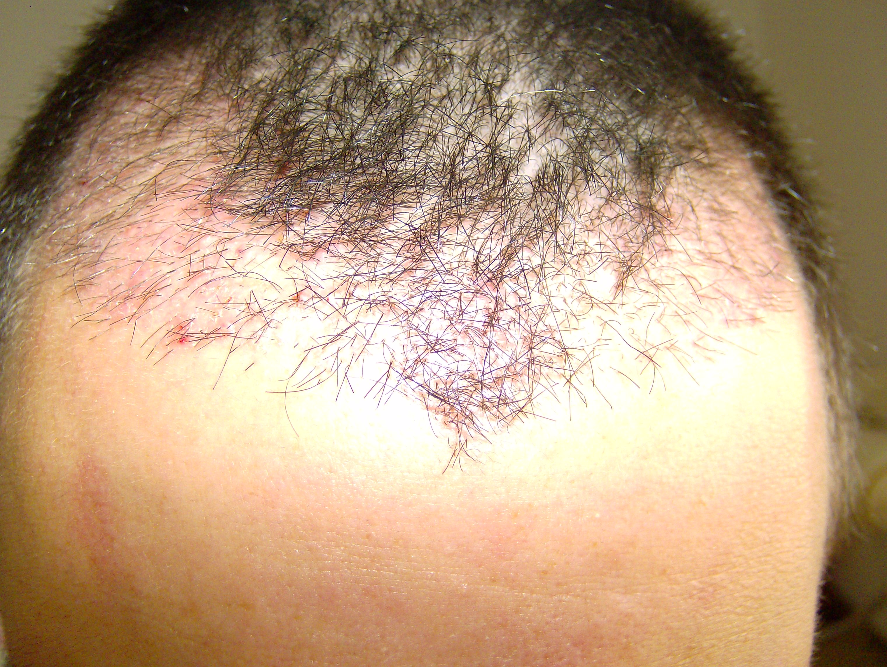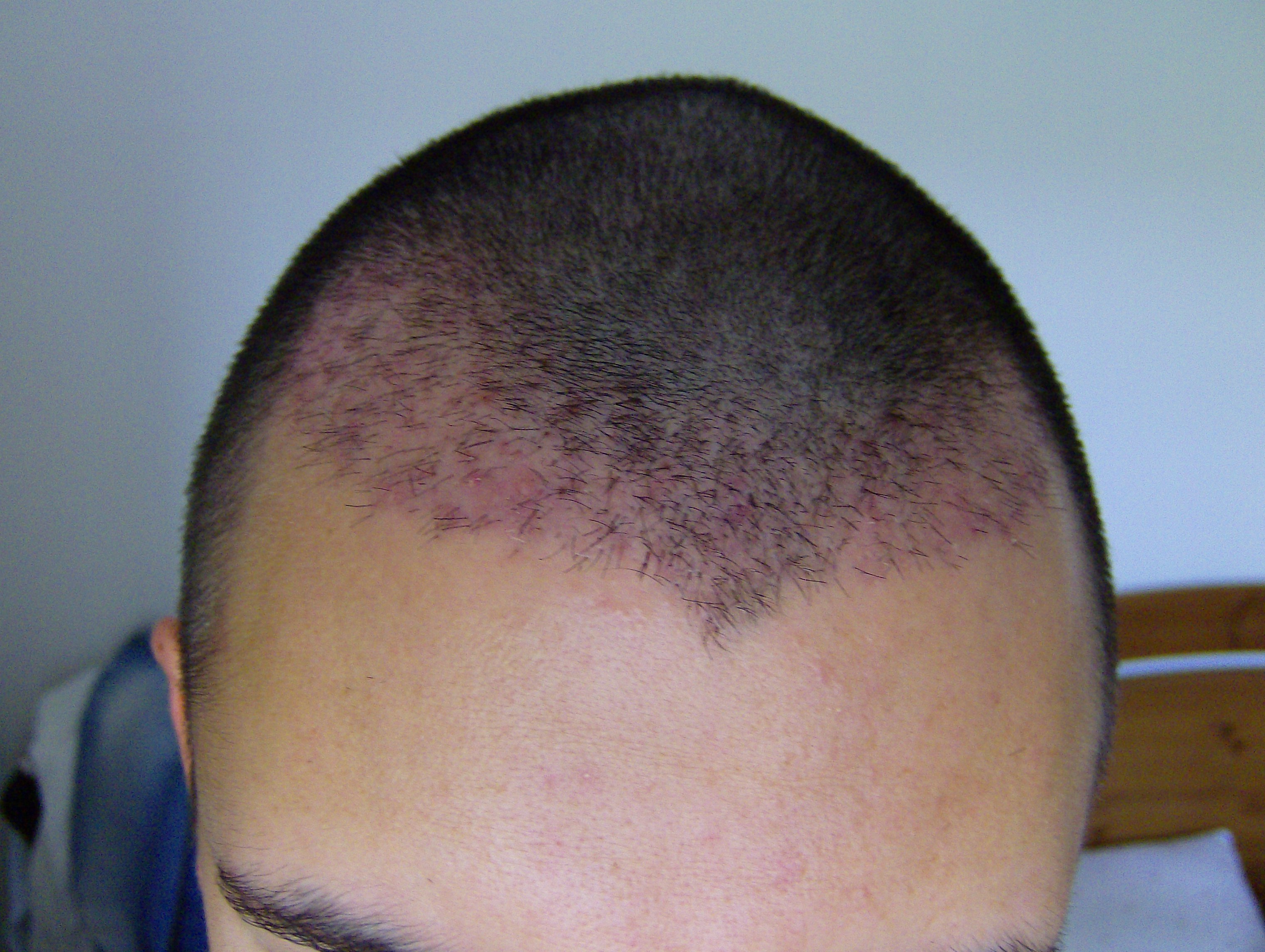 Zur Zeit befinde ich mich wohl in der schwierigsten Phase, da eine Menge Haare (ca. 60 - 70%) ausgefallen sind und ich zwei rote kahle Ecken aufm Kopf habe. Das sieht wirklich beschissen aus. Shockloss habe ich auch, wenn ihr meine pre - Op Fotos anseht werdet ihr merken was ich meine. Nach dem Kopfwaschen habe ich auch noch hier und da ein paar kleine Blutungen, anscheinend lösen sich die letzten hartnäckigen Krusten oder die Pickel platzen auf. Was mir allerdings Mut macht ist, dass sich bereits jetzt einige Stoppel wieder hervorwagen. Die Qualität der Fotos ist gut genug dass ihr das auch sehen könnt. Nun hoffe ich auf viele Feedbacks, besonders von den Veteranen und den Profis (d.h. Gewerblichen).