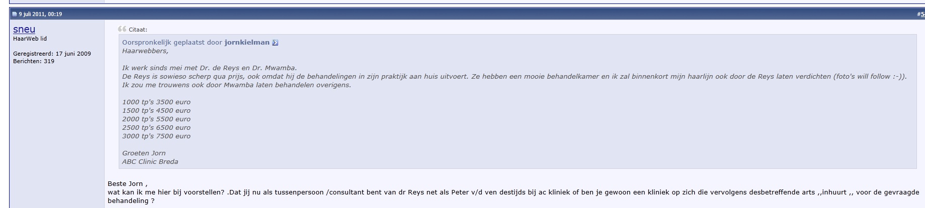 Der neue Berater von Dr. De Reys hat nämlich schon am 9 Juli 2011 die Preise im holländischen Forum gepostet.