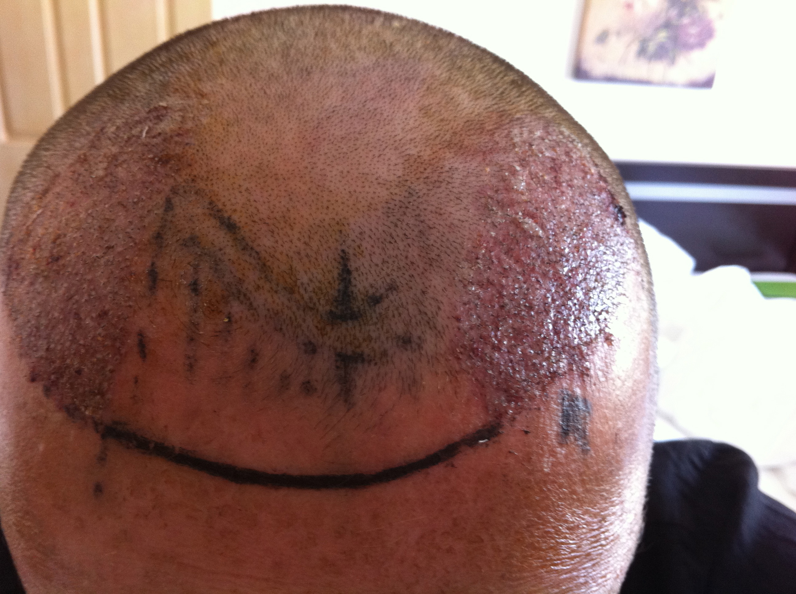 ich habe mich penibel an die Instruktion danach gehalten, jeden tag zweimal waschen mit sega med Shampoo, Hinterkopf mit bodylotion, empfängerbereich mit terramycin einschmieren, keine Kopfbedeckung getragen, nicht daran gekratzt, kopfposition beim schlafen ohne druck auf den empfängerbereich und ruhe zu hause, keine Arbeit, kein stress, kein sex, kein Sport, keinerlei Anstrengung, keine Klimaanlage....Smile
