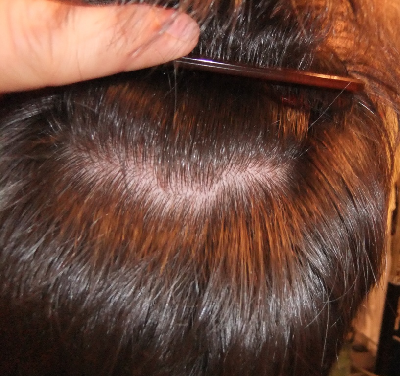 Anbei findet ihr ein paar Bilder. Da ich meine Haare schon immer länger trage, fallen die lichten Stellen dementsprechend auf.