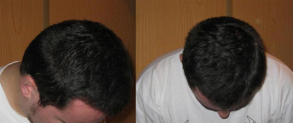 Um das engültig zu beurteilen müsste man die Haarlinie sehen. Aber halten wir mal fest, das auch die Seiten dichter wirken und die Haare dunkler sind. Sie können hier viel schreiben wenn der Tag lang ist, aber trotzdem nicht beweisen das dies ein 6 Monatsergebniss ist auch nicht welche Anteil am Erfolg Finasterid und Minoxidil haben.