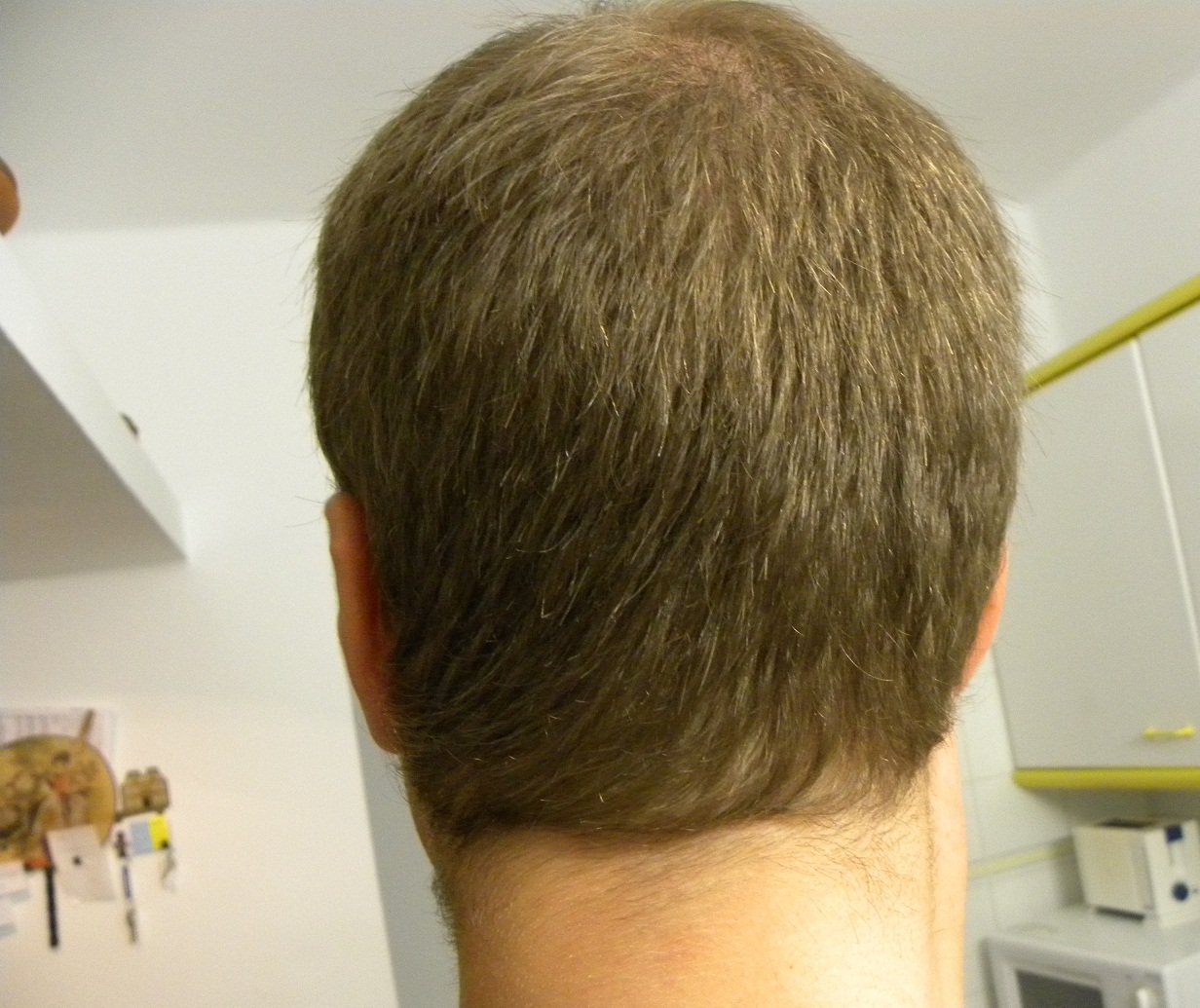 Ich habe glaube einmal 1 Bild reingestellt vor fast 4 Jahren wo der Haarausfall im Anfangstadium war (Kann mich nicht mehr genau erinnern ob es in diesem Forum oder einem Ami Forum war, mit guten Lichtverhältnissen (nicht mit grellem Neonlicht auf den Kopf gerichtet so wie diese). Sonst habe ich definitiv keine Bilder reingestellt. Fin habe ich leider nicht durchgehend genommen, muss eingestehn, dass das ein großer Fehler war. Habs nach ca 6 monaten damals vor ca 4 jahren wieder abgesetzt, weil ich dachte, dass es nicht wirkt. Und nehme es jetzt wieder seit ca 1.Jahr, seit dem hält sich dieser Status, Tonsur wurde sogar eine Spur besser.