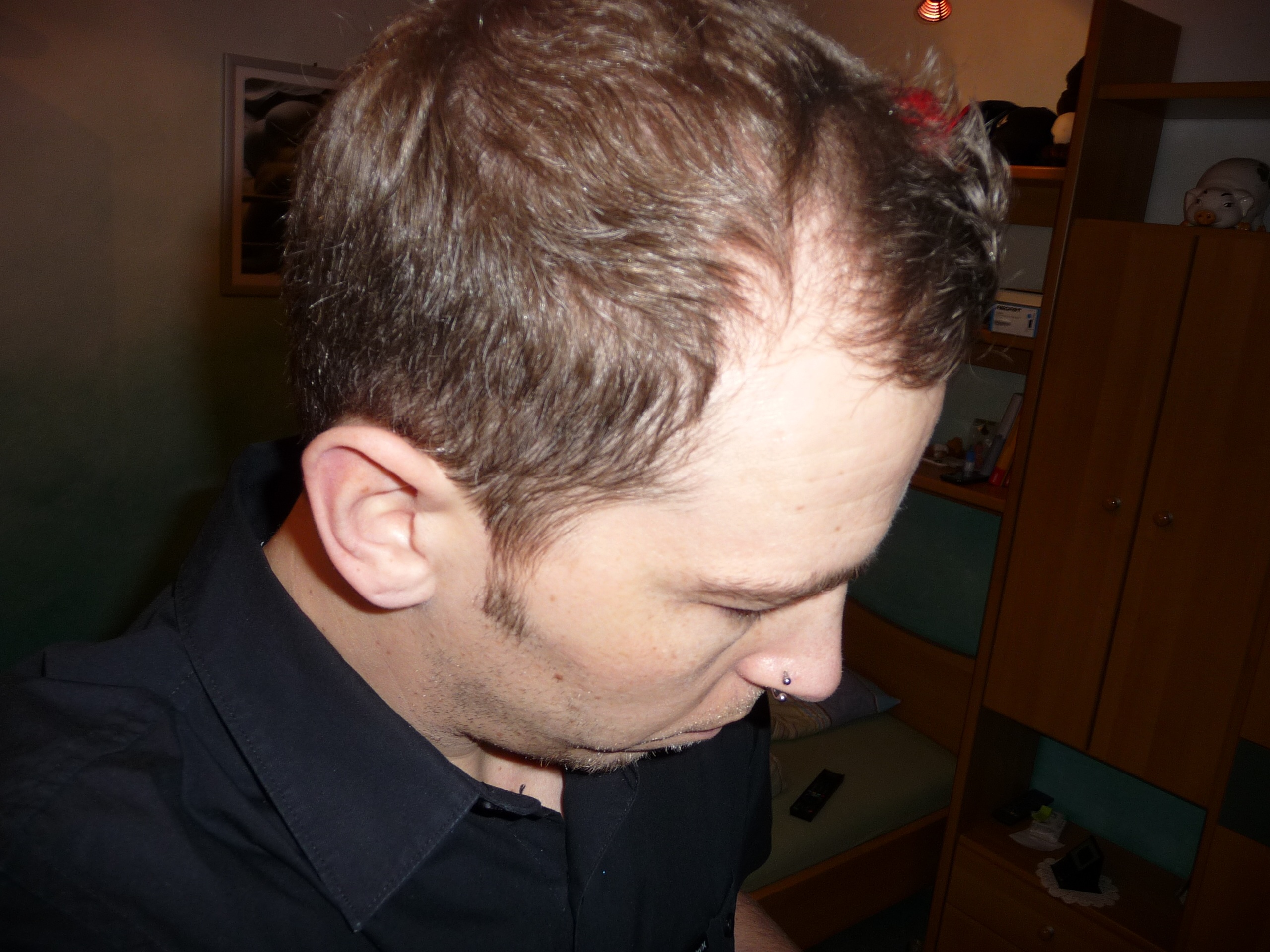 Ich bin 35 Jahre und habe bereits mit 20 einen gewissen Haarverlust bemerkt, was meinen Mitmenschen nie aufgefallen ist. Seit ca. 8 Jahren nehme ich Propecia. Durch dieses Medikament hat sich der Haarverlust relativ stabilisiert, dennoch ist er leicht vorangeschritten. Zumindest beschleicht mich dieses Gefühl.