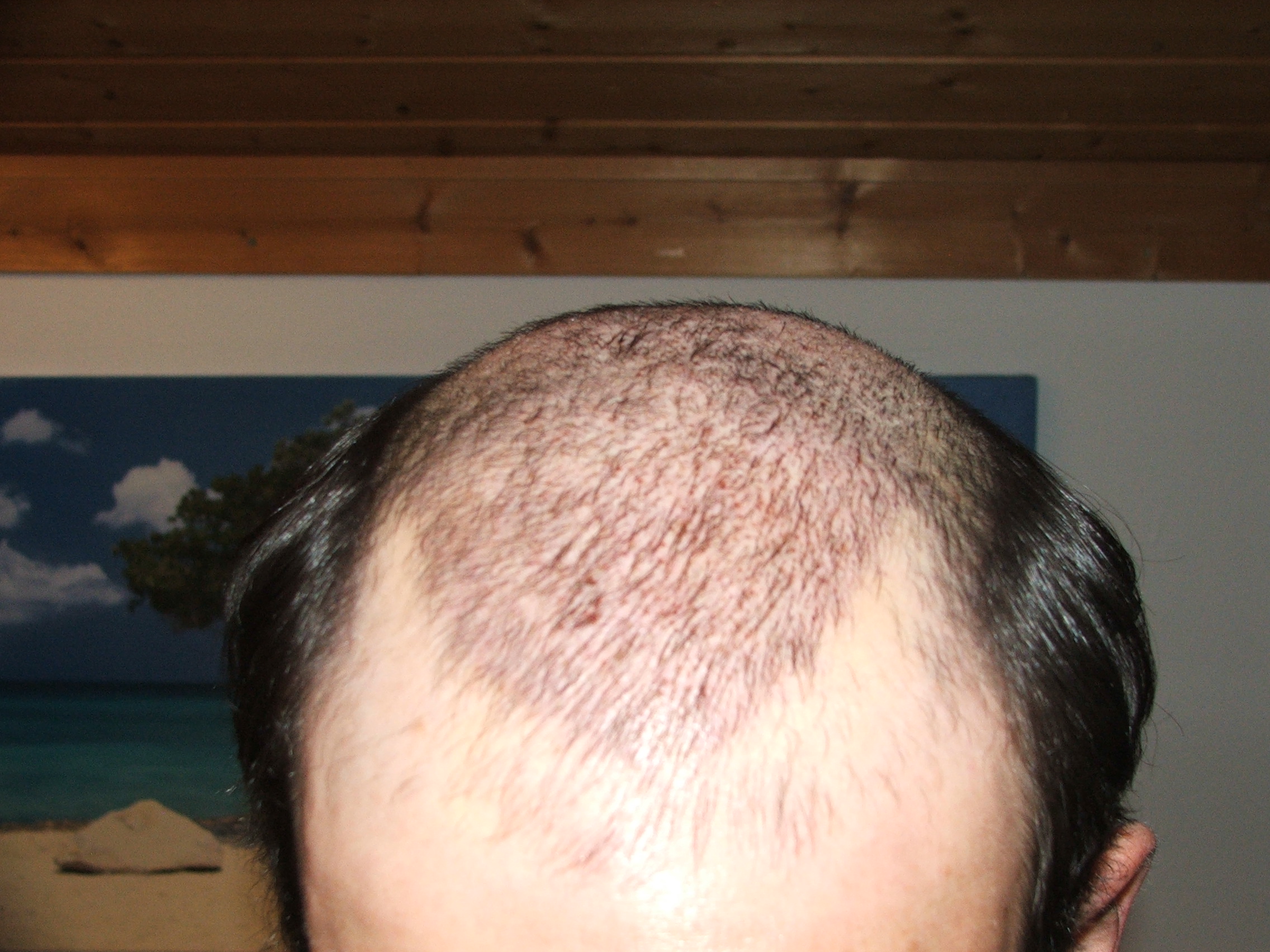 Ich habe hier Fotos von 3,5 Wochen nach der OP. Sind sogut wie alle verpflanzten Haare ausgefallen. Ich sehe auf den Fotos also aus wie vor der Op.
