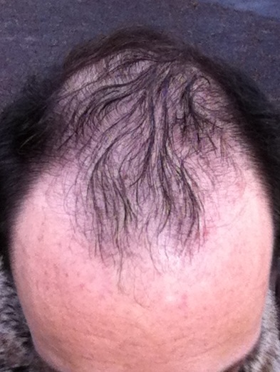 Wie man sieht benötige ich Haare für den gesamten Oberkopf inkl. Geheimratsecken und Tonsur. Meine Haare sind sehr dunkel und ziemlich dünn. Ich glaube das sind schlechte Voraussetzungen.
