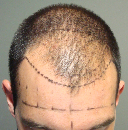 Geplant waren 2500 grafts, aber am tag der Behandlung stellten wir fest dass die flache und die Ansprüche doch etwas großer sind. Daher haben wir der plan auf 3000 grafts umgestellt in zusamensprache mit der Patienten. Er wollte einem haarliene der sich in der Mitte etwas zuspitzt, dass wurde dann auch beim design so gemacht.