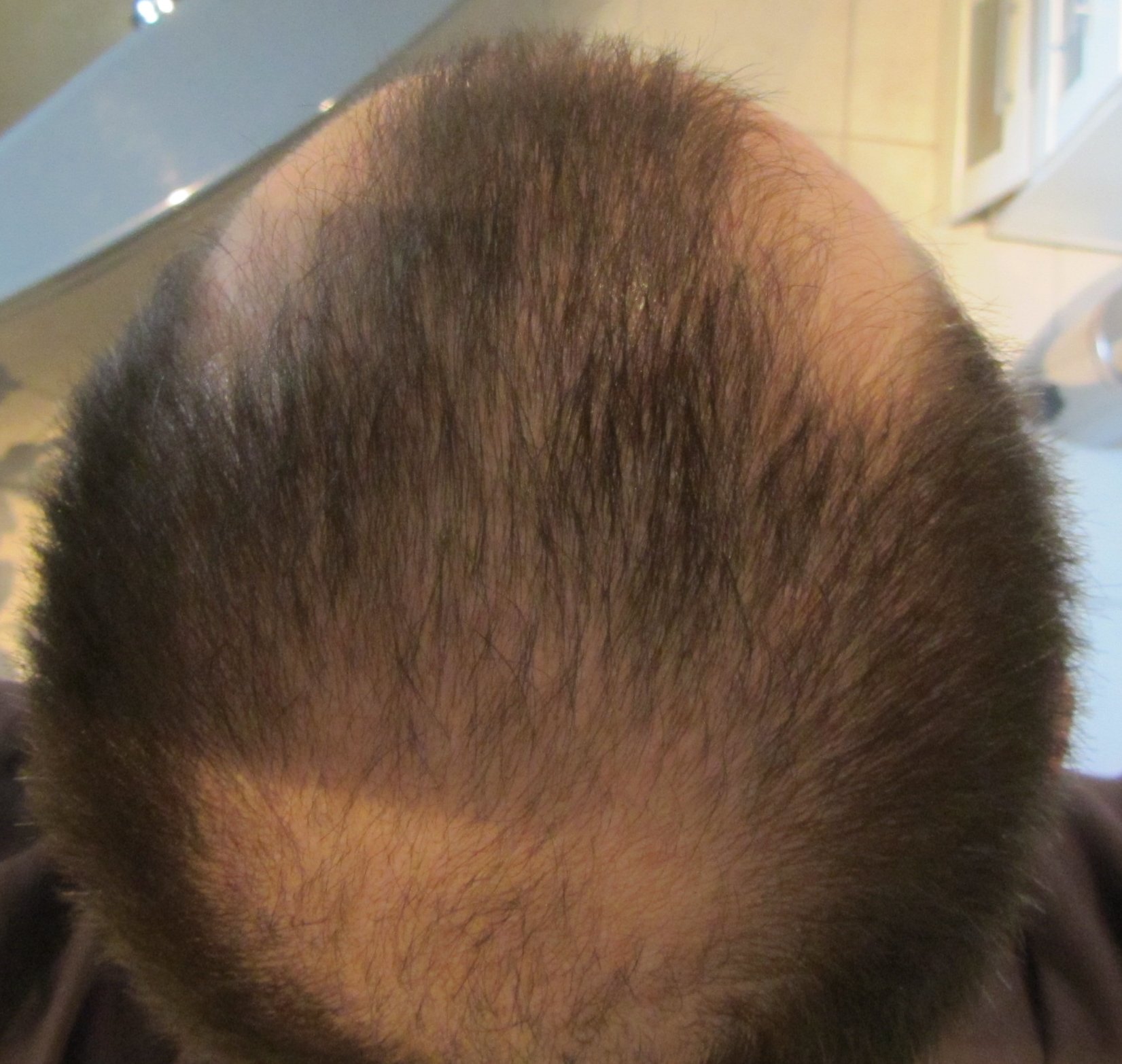 Problematik weil (zumindest in der Tonsur) keine richtig kahlen Stellen sondern überall noch endlich viel Resthaar.