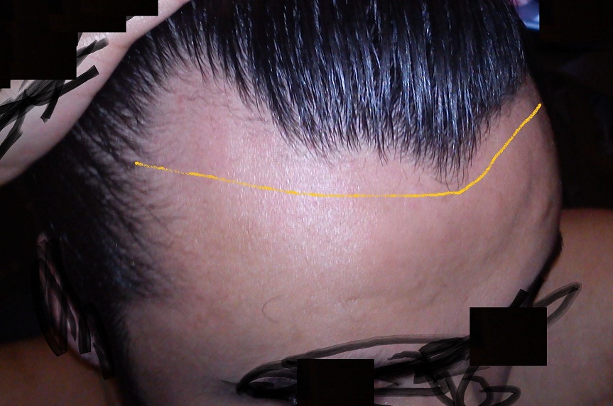 wie schon erwähnt, habe ich an der haarlinie ein problem. meine haarlinie, vor allem im zentralen halb linken und halb rechten bereich zurückgezogen/wurde kahler.man erkennts auf den fotos.