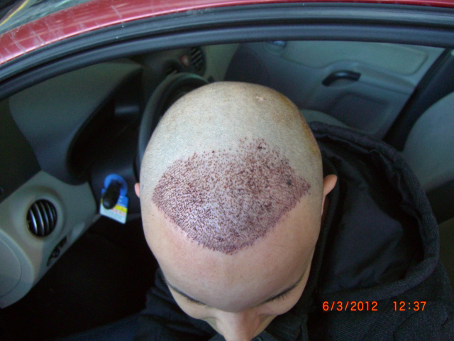 Erstmal danke an euch das ihr mir so schnell zurück geschrieben habt.Wie ich glaube schon geschrieben habe mir wurden ca 2800 Graft entnommen mit Micromotor.Man sagte mir nach der OP das ich viele Single Haare hatte aber auch ein paar 2er Graft(hinter der schläfe an den seiten habe ich fast nur 2er Graft aber mit ne dichte von ca 20 Graft was mein bruder gezählt hat.) die ich gut nach der OP sehen konnte.ein paar 3er Graft waren auch dabei aber ich habe mehr single Haare gesehen.Habe auch nur ca 25 -30 Graft gezählt pro cm2(das würde für mein Haarstatus reichen sagte man weil ich dicke Haare habe?!?!) ich bin da aber sceptisch mmh Was würde bei dir für ne dichte gesetzt ich meine in der Haarlienie und was dahinter.Normalerweise muss doch auf kahlen flachen auf jeden cm2 die Graft zahl sein die ein versprochen wurde oder wofür man bezahlt hat, kann das eventuell mal um 10 Graft wareieren? Ich hoffe die dichte reicht bei mir aus. schiss nochmal unters Messer habe ich nicht und will ich aber auch nicht weil man mir eine gute dicht versprochen hat. ich hofe auch das ich noch gute Graft reserven habe falls was später seien sollte wenn ich älter werde .Wie oft bzw wieviele Graft kann man eigentlich vom Hinterkopf entnehmen per Fue bis man sagt es ist ende?Hier sind zwei Bilder von mir nach der OP vorne und hinten zwei Bilder nach ca 10