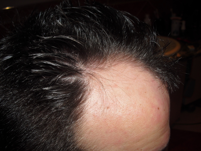 Jedoch bemerkte ich dann, dass die Haare von vorne her ausfallen. Das ist ziemlich gut zu sehen, weil ich da ein Muttermal habe(siehe Foto).