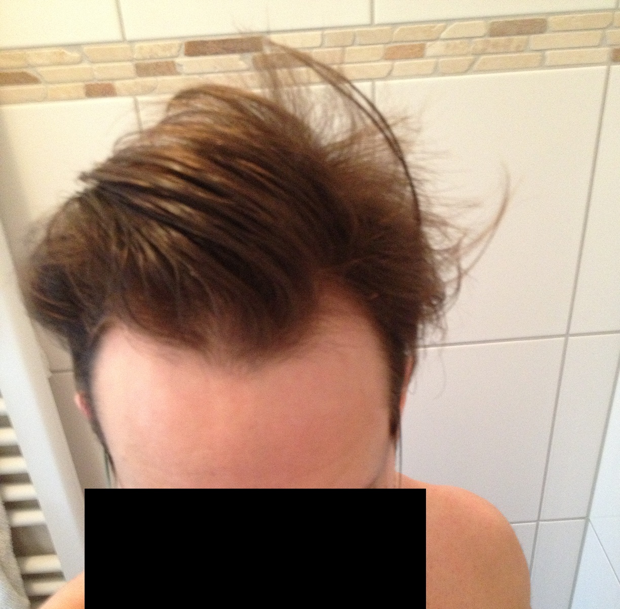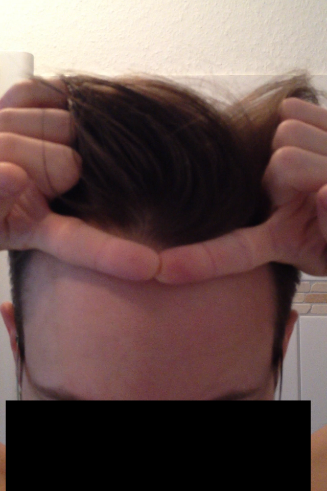 hm, vorne sieht es jetzt nicht mehr dicht aus, meines erachtens ist das keine "natürliche" stirn mehr (in der mitte undicht). ich denke es geht langsam los bei dir.....