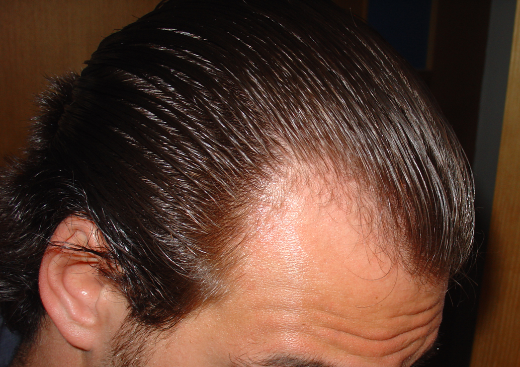 Nun ja, den aktuellen Status habe ich seit ich 23 bin und unverändert. Ohne Medikamente natürlich. Ich kann nur soweit sagen dass wir keinerlei "kräftigen" bzw. fortschreitenden Haarausfall haben.