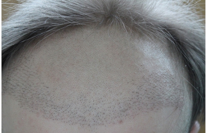 1. OP Koray - totale Katastrophe. Viel zu wenig Haare auf zu großer Fläche, dicke Haarlinie und nix dahinter, fette Multigrafts in der ersten Reihe, 1mm Punch, viel zu gerade und tiefe Haarlinie, 18 Monate Rötung!