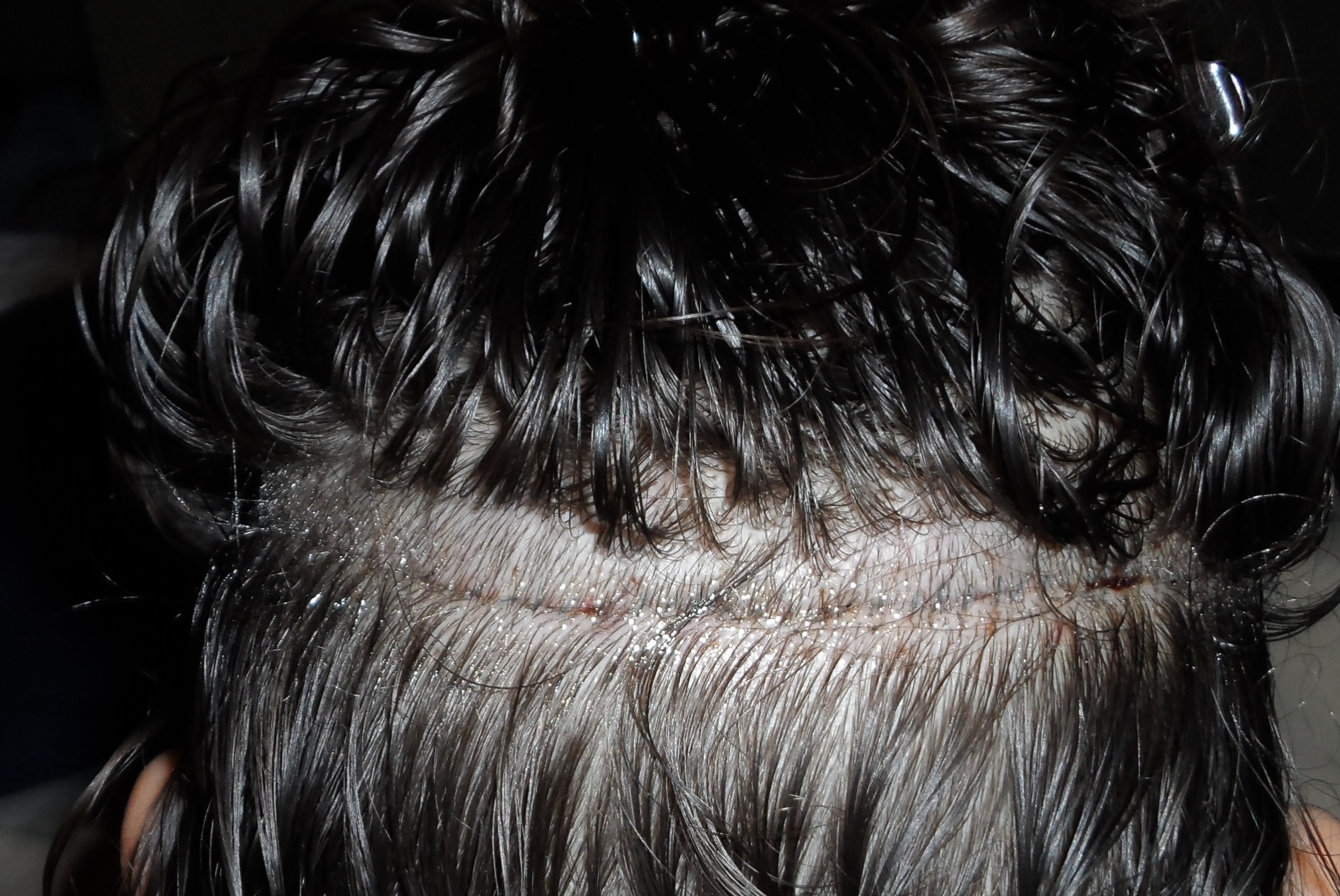 Die nacht hatte ich ca 5 stunden mit unterbrechungen geschlafen aber war ziemlich ok. War auch größtteilig schmerzfrei und die schwellung war fast weg. Ich habe um meinen Kopf vor der Aussewelt zu verdecken einen schal leicht um meinen Kopf gewickelt und und bin also wieder zu meinem Nachsorge termin in die Klinik wo mir die Klammern aus der wunde am Hinterkopf entnommen wurden (wirklich kaum schmerz, jedenfalls nicht bei mir, bin da aber eh meist sehr tapfer). und jeglichen Krusten werden gereinigt. Dr devroye schaut sich das Werk an und man bekommt eine Salbe für die Donorwunde am Hinterkopf. Diese muss dann 2 mal täglich angewendet werden. Der Kopf ist im Übrigen ziemlich taub und die Augenbraun konnte ich nur teilweise bewegen. Jedoch keine Schmerzen und das Taubheitsgefühl soll normal sein. Am selben abend kann man dann selbst oder mit Hilfe eines Vertrauen den Donorbereich waschen und cremen. Nachts konnte ich dann wieder ca 4-5 stunden schlafen