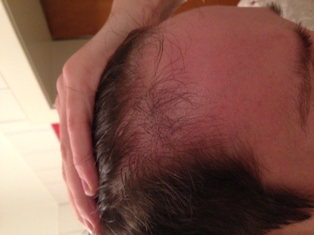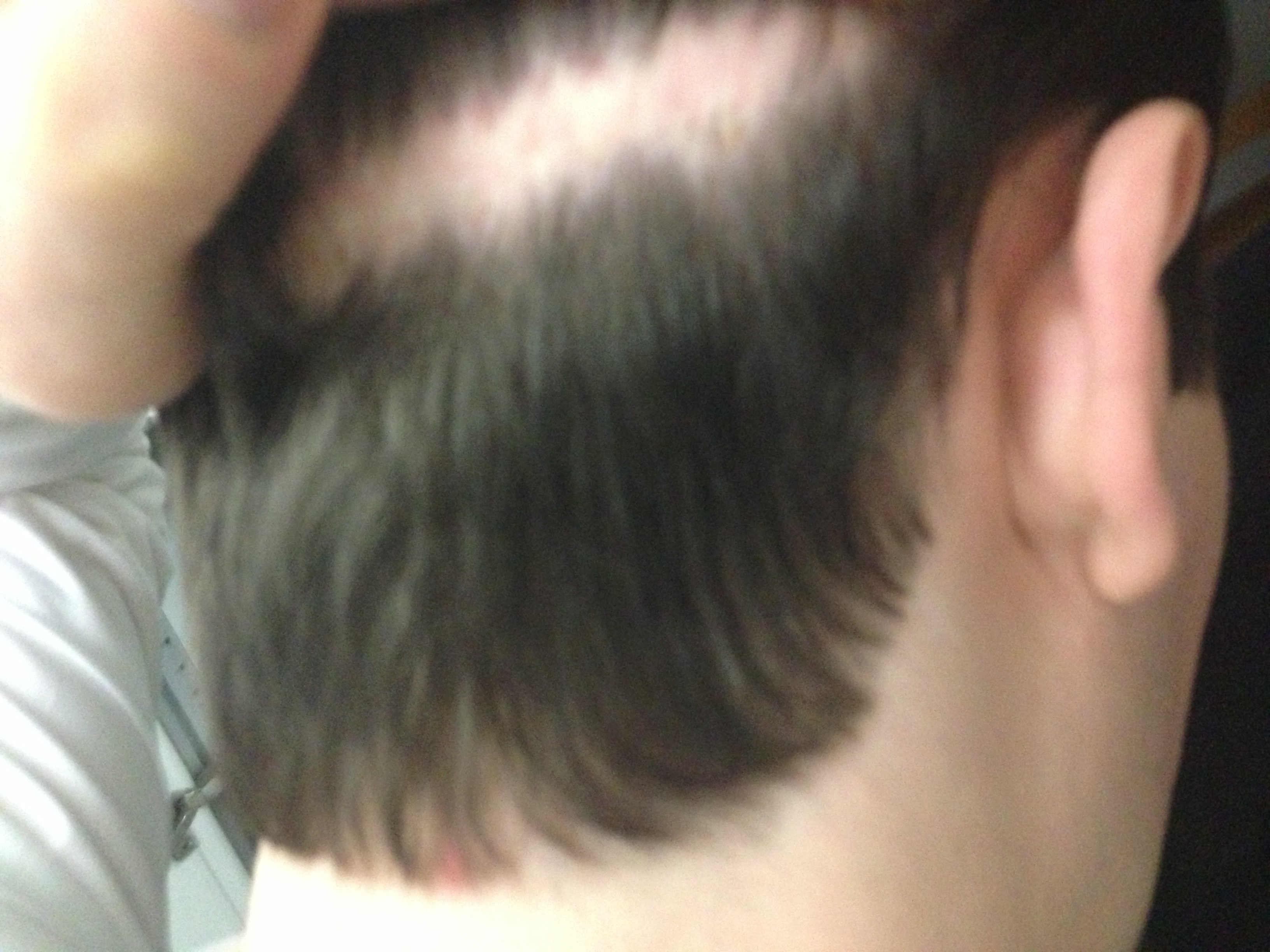 Jetzt hast Du Vorne keine Verbesserung und dafür eine fette Narbe am Hinterkopf. Der Arzt geht gar nicht!