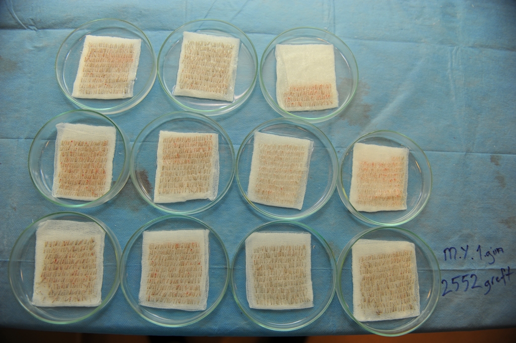es wurden ca. 4400 Grafts transplantiert. Habe von den entnommenen Grafts auch noch Bilder in Schalen, die Dr. Demirsoy gemacht hat. Ich stell die vlt. auch mal mit rein.