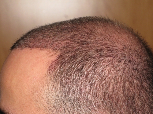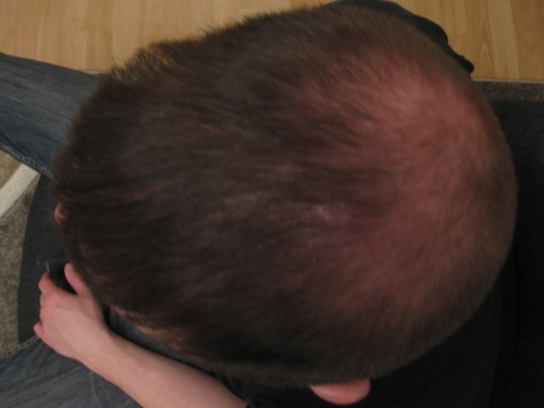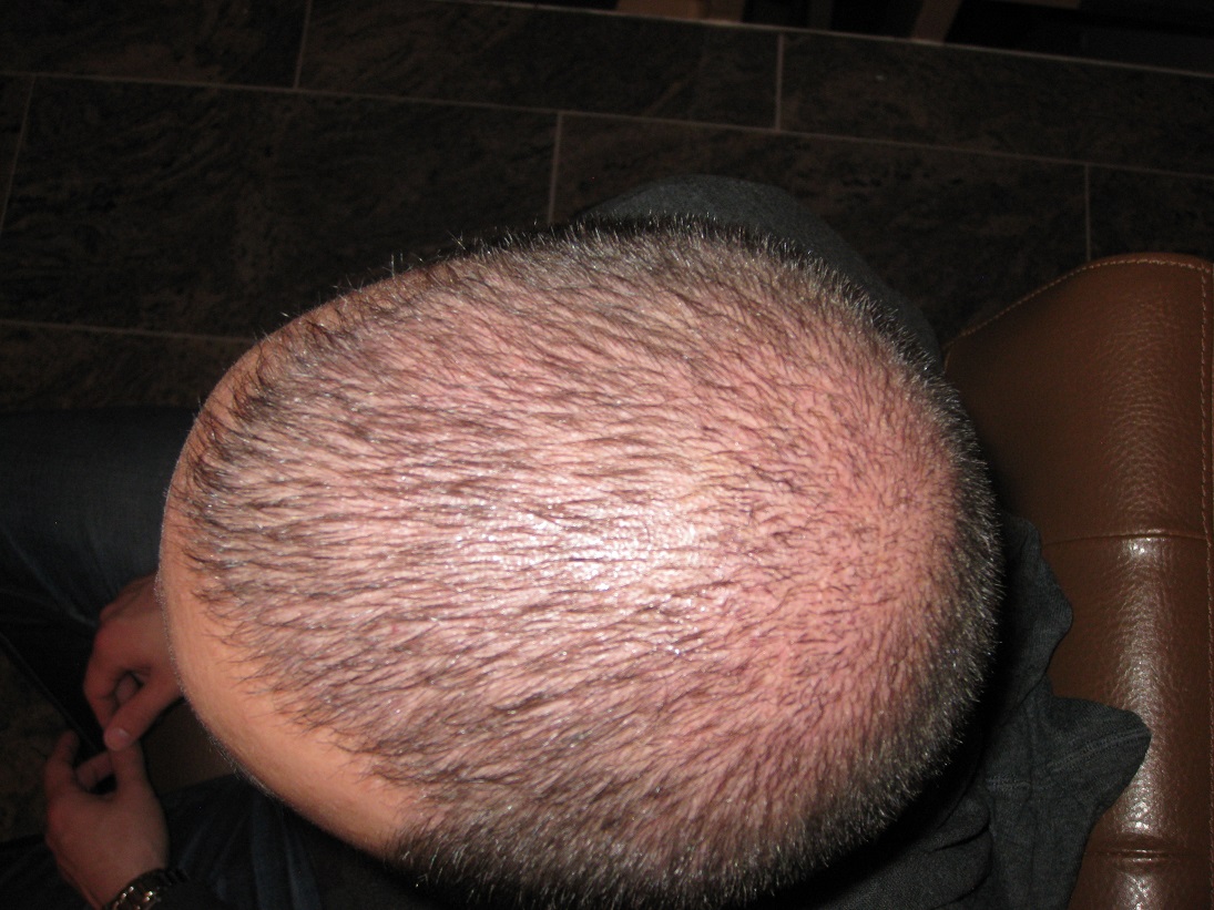 Mein Problembereich ist vorne rechts. Da hab ich doppelt soviel haarausfall gehabt als vorne links.