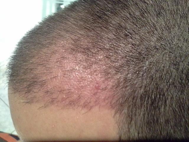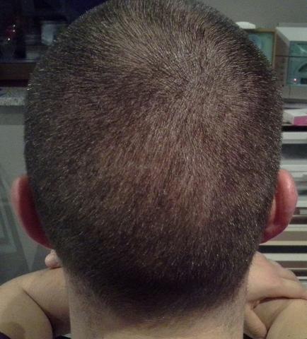 hier mal ein kleines Update ca. 11 Wochen Post OP. Die Stellen die vorher noch kahl waren werden nun langsam kleiner. Gerade die linke Ecke ist schon schön zugewachsen, die rechte Ecke zieht nun auch langsam nach. Ich trage nach wie vor eine 4mm Frisur, dass ist im Moment für mich einfach das beste. Sonst läuft alles nach wie vor ohne Probleme. Die Rötung ist auch nicht mehr so stark, aber immer noch sichtbar.