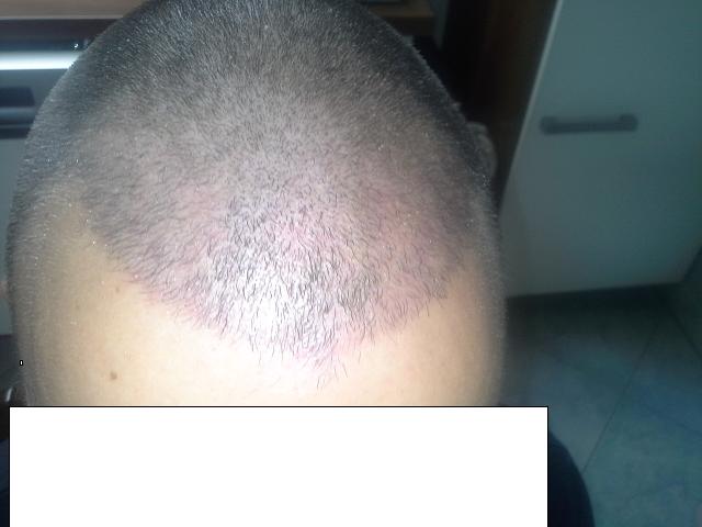 Hier ein kleines Update 7 Wochen Post OP. Mittlerweile sind natürlich viel Haare ausgefallen und dadurch ist die Rötung auch deutlich zu sehen. Ich trage jetzt eine 3mm Frisur, alles andere würde meiner Meinung nach keinen Sinn machen. Ich hab mir auch Aloe Vera Spray zugelegt, aber merken tu ich davon nichts...Dann nehm ich noch zusätzlich 5mg Biotin pro Tag ein, ob das was bringt? Keine Ahnung! Ist wahrscheinlich eher was für das Gewissen überhaupt was zu tun, außer FIN natürlich