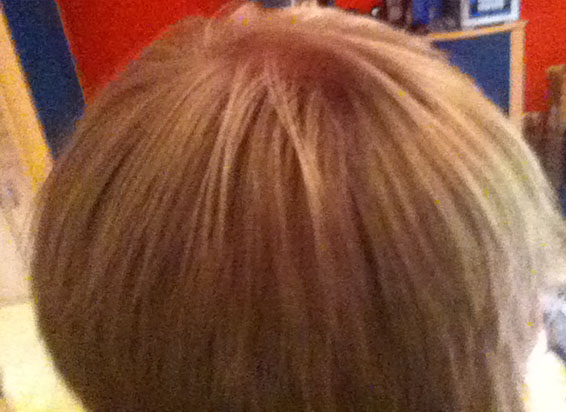 auf dem dritten bild sieht man, dass die haare sehr dünnkalibrig sind. oben lichtet sich das haar. würde man die haare mit wasser feucht machen, würde man eine ausdünnung sehen.