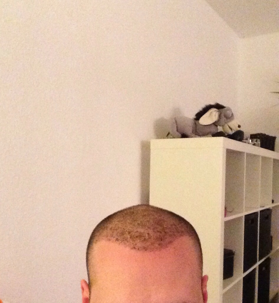 Und mir wurde auch gleich gesagt, dass ich mich später noch um die Tonsur kümmern müsste wenn es mich stört. Momentan muss ich mich leider, wie natürlich erwartet und prophezeit von dem Großteil der neu gewonnenen Haarpracht verabschieden.