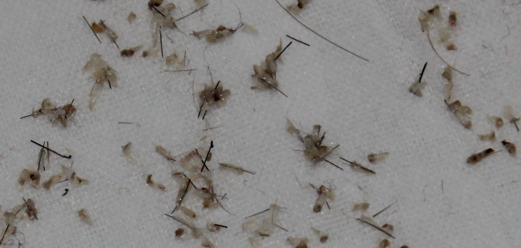 Also ich kann dir sagen, dass es sich auf dem Bild "nur" um Haare handelt in Begleitung von Haut (toter Haut) beides ist vollkommen normal nach einer HT.
